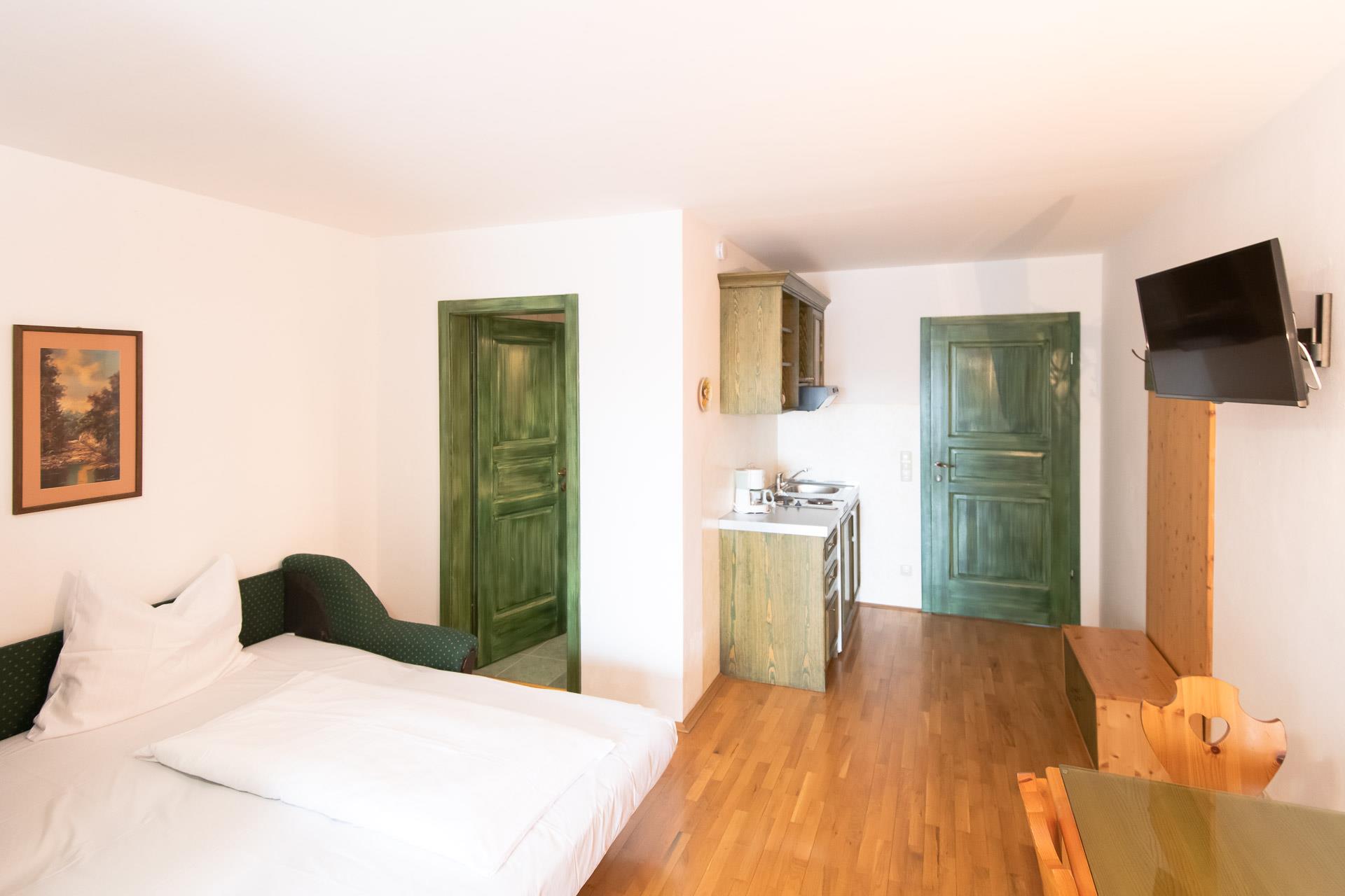 Jedes Appartement und jedes Zimmer verfügt über ein SAT-TV sowie W-Lan zugang.