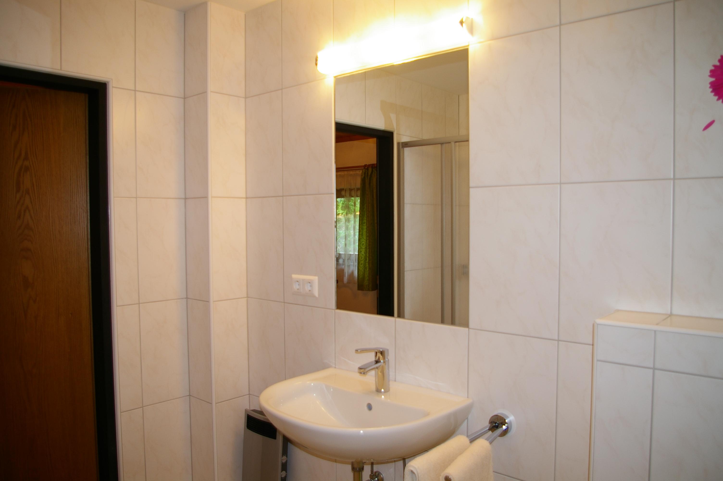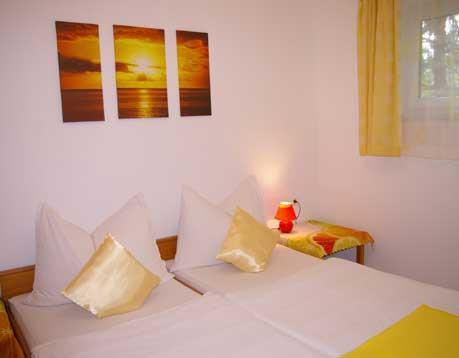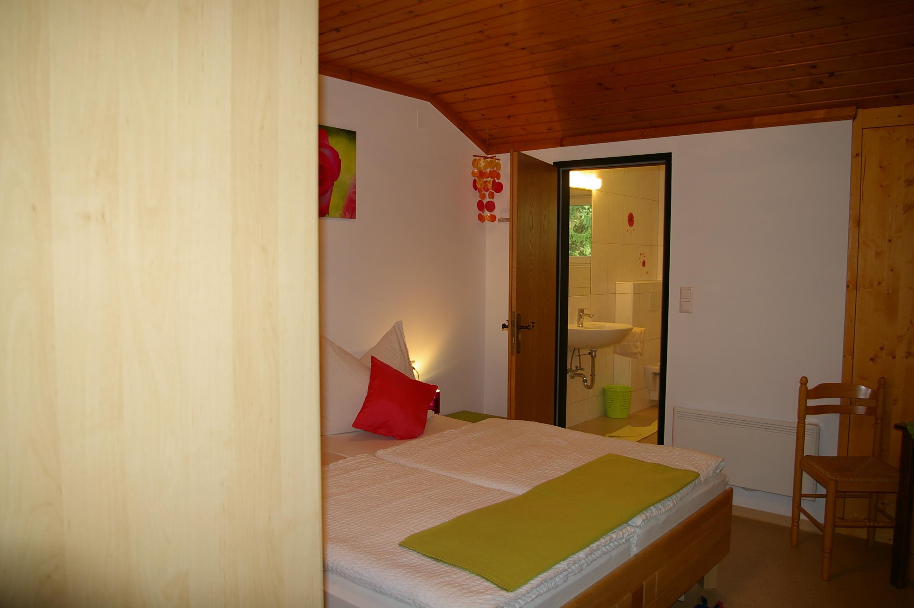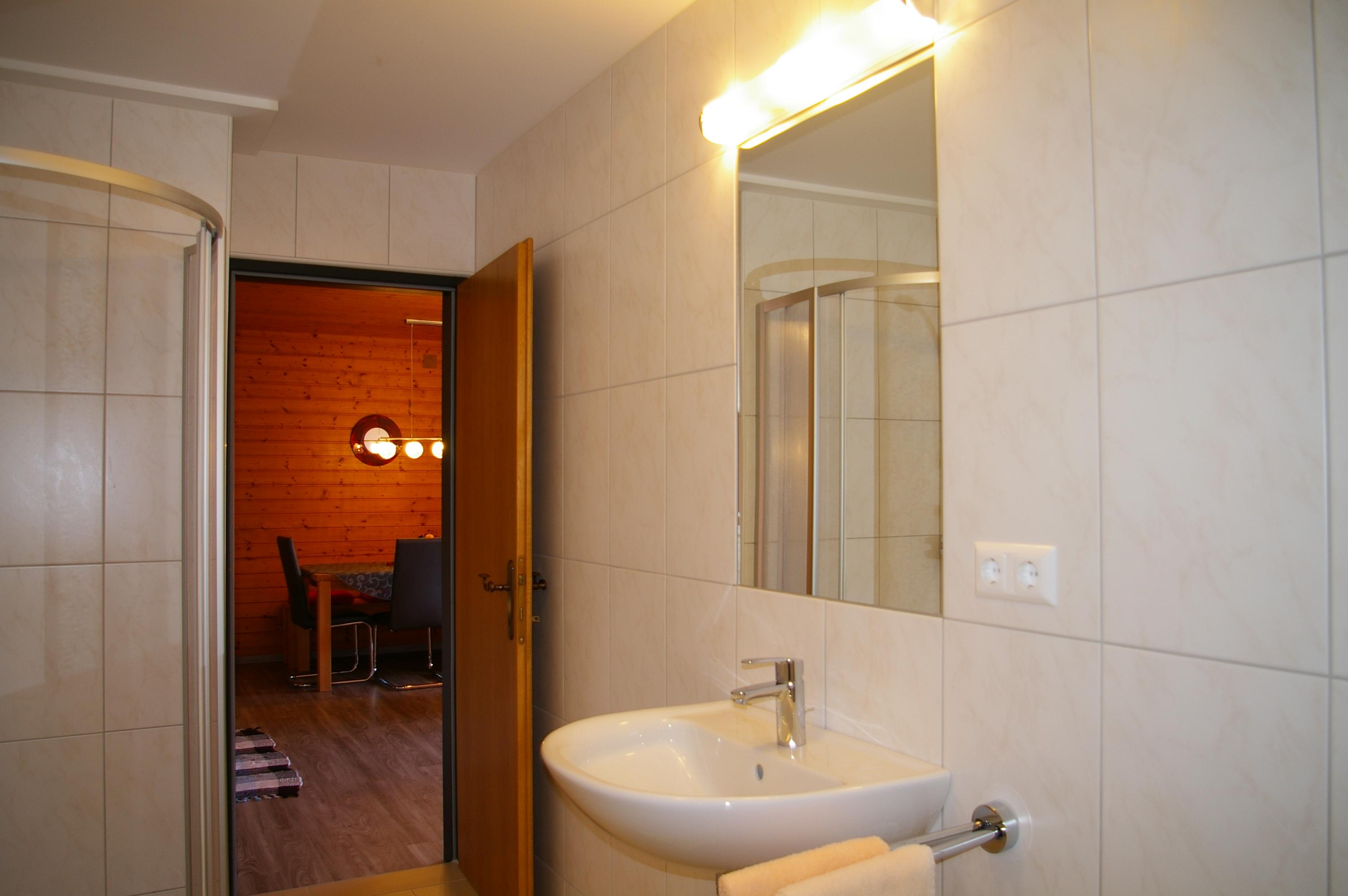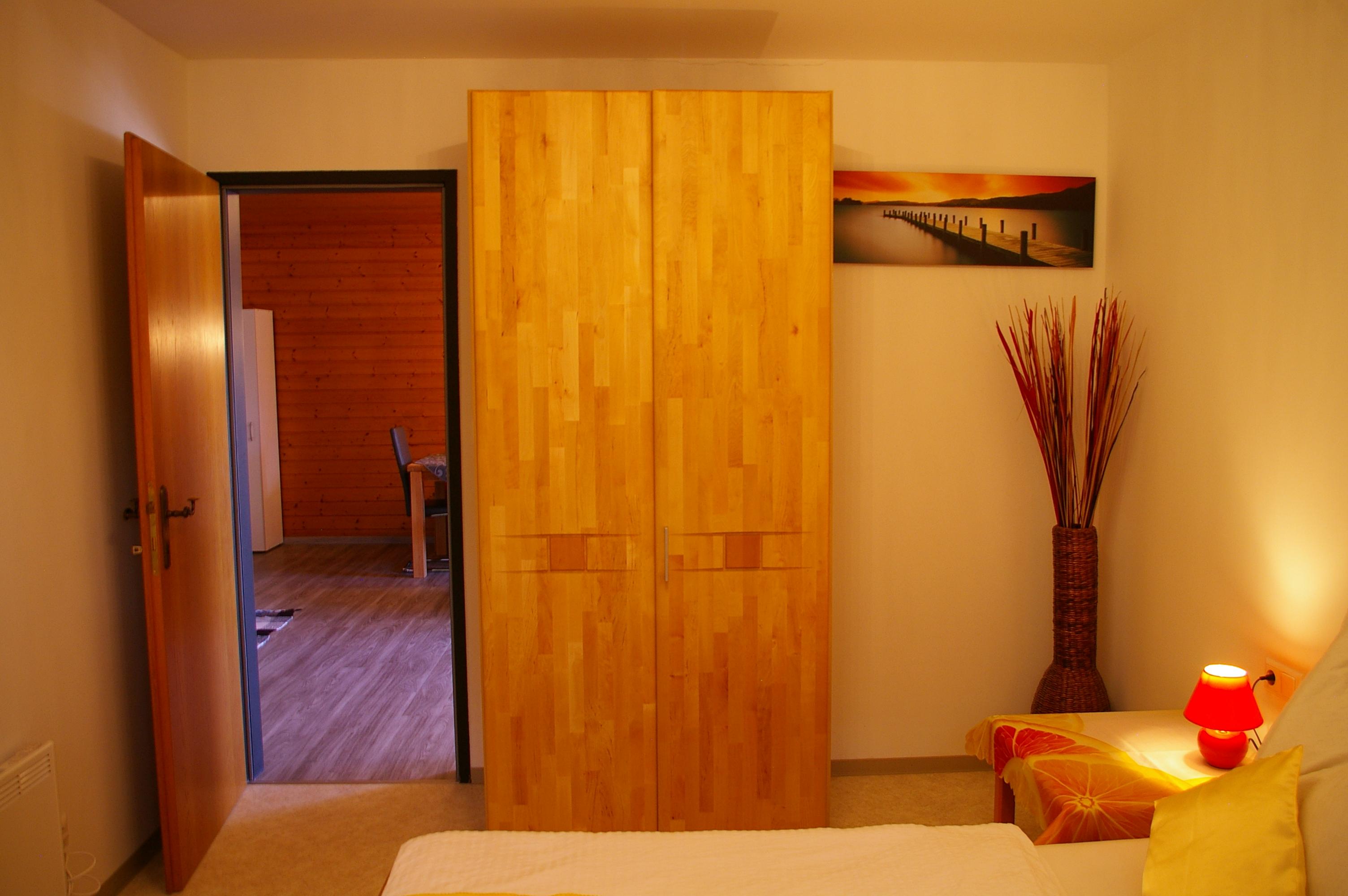 Die Wohnküche bietet eine gemütliche Essecke. Der Küchenblock besteht aus einem großen Kühlschrank mit Gefrierfach, einer Spüle, einem Herd mit Backofen. Die Couch mit zwei Sesseln und direktem Blick auf den Fernseher mit Sat - TV schafft eine Wohnzimmeratmosphäre. Das Appartement ist beheizbar.