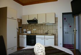 Das 61 m2 große Appartement besteht aus einer Wohnküche, 2 Schlafzimmern, Dusche und WC. In der hellen geräumigen Wohnküche befindet sich eine gemütliche Essecke mit direktem Blick auf den Flachbildfernseher mit Sat - TV. Der Küchenblock besteht aus einem Herd mit Backrohr, einer Spüle, einem großen Kühlschrank mit Gefrierfach und ausreichend Staumöglichkeit. Die beiden Schlafzimmer sind sehr geräumig und hell. Das Appartement ist beheizbar.