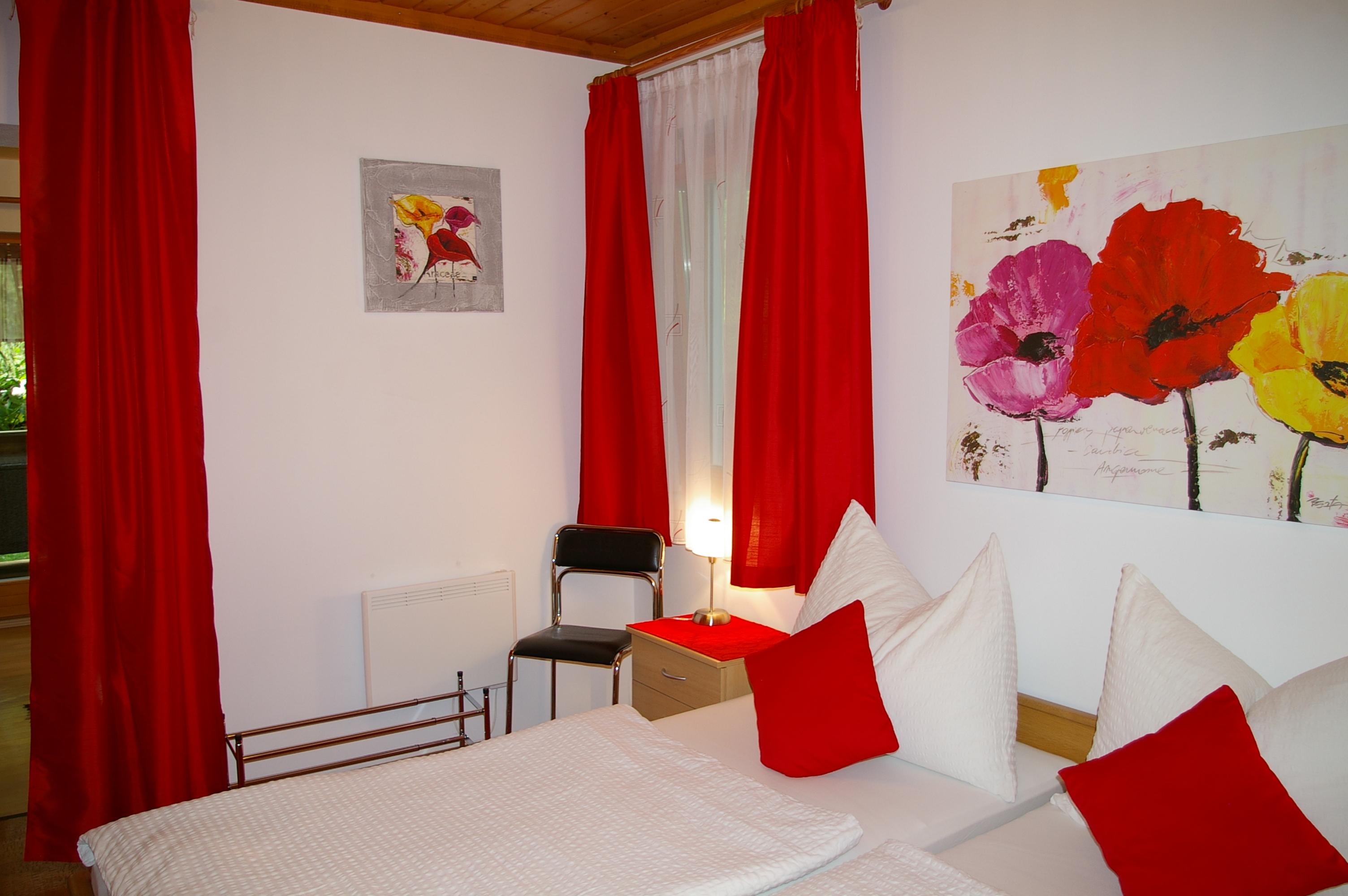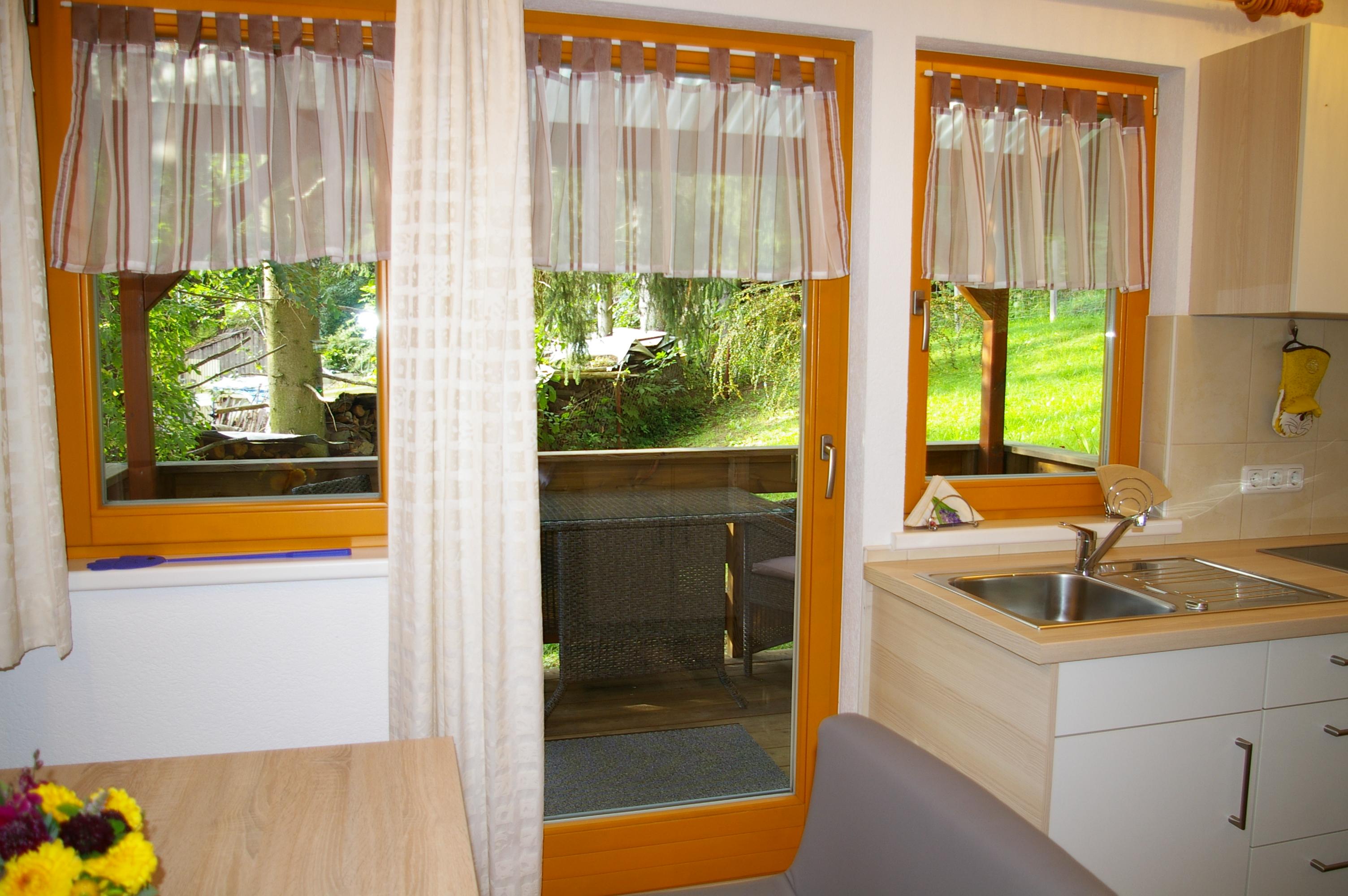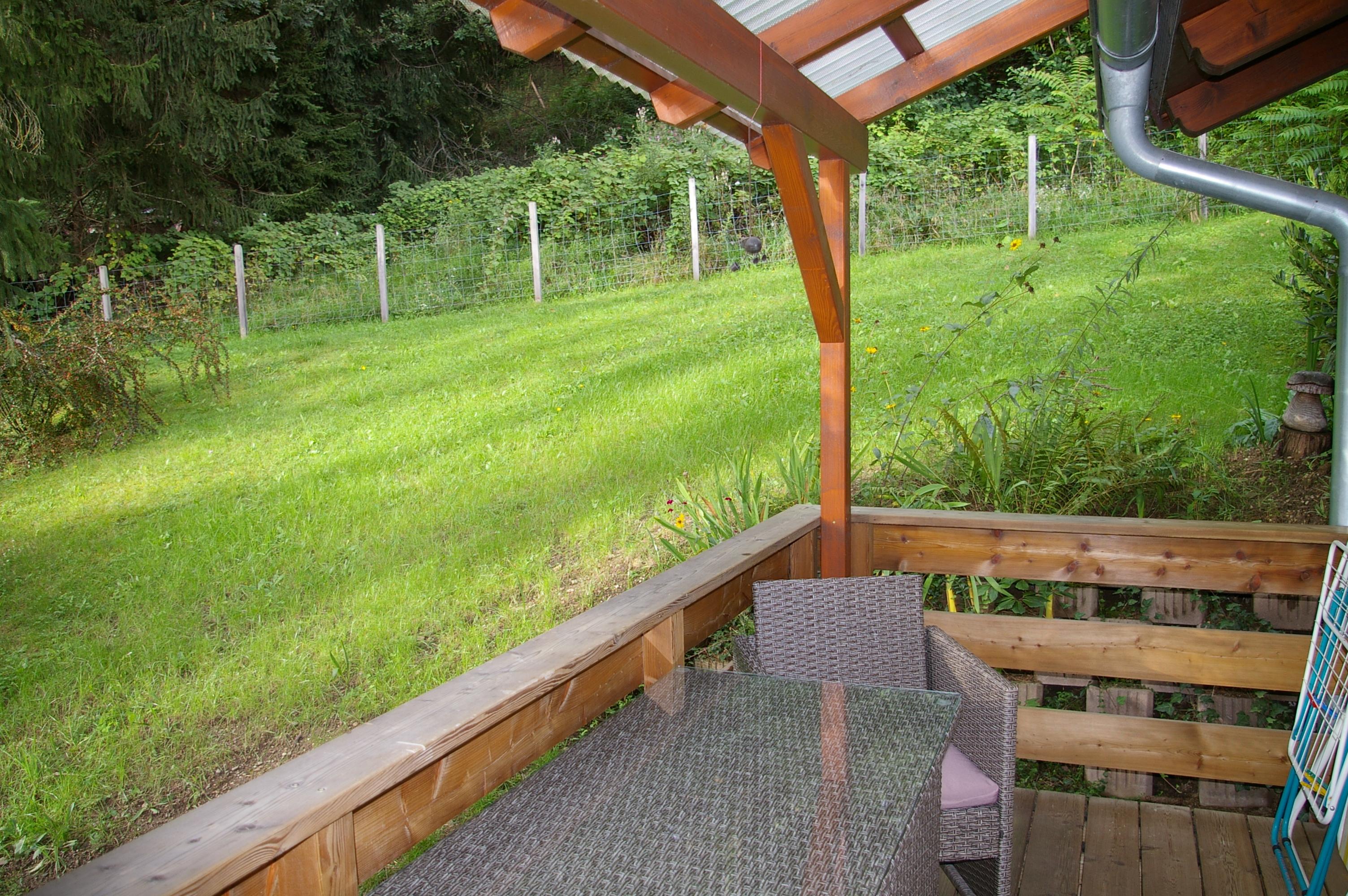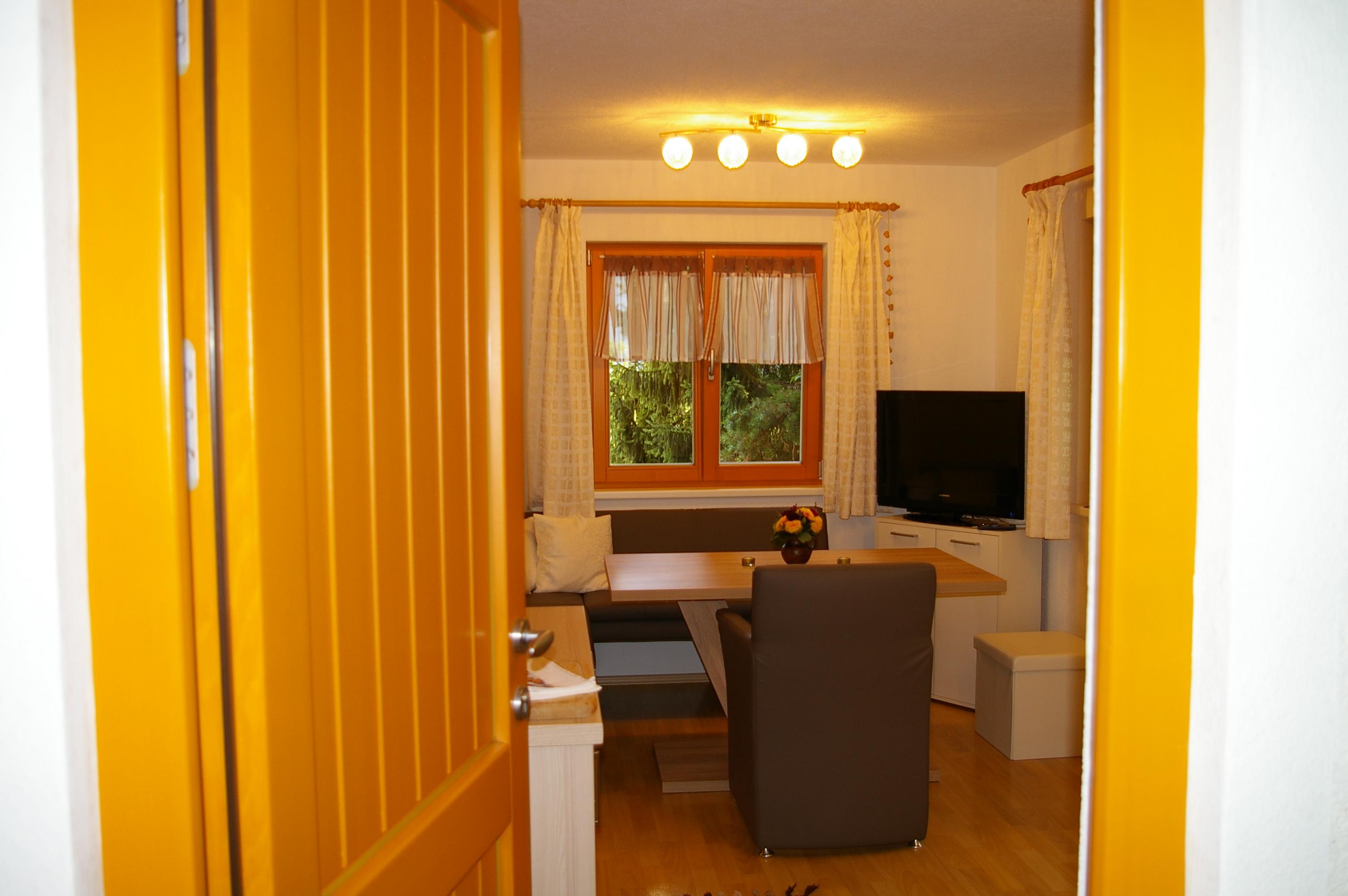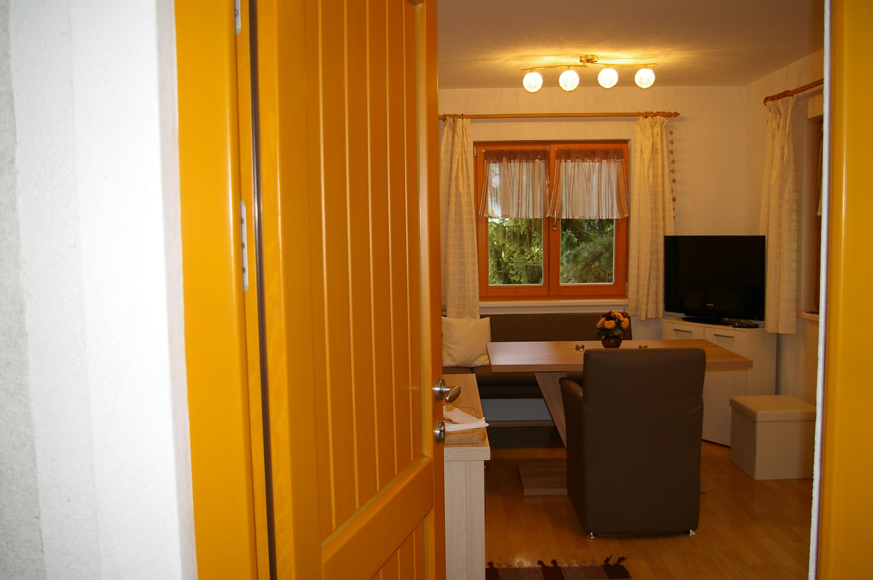 Die Wohnküche verfügt über eine gemütliche Essecke mit direktem Blick auf den Fernseher mit Sat - TV. Der Küchenblock besteht aus einer Spüle, Herd mit Backrohr, Kühlschrank mit Gefrierfach, Mikrowelle und ausreichend Staumöglichkeit. Das Schlafzimmer ist hell und geräumig. Die Süd-Westterrasse bietet den Blick auf See und Berge. Das Appartement ist beheizbar.
