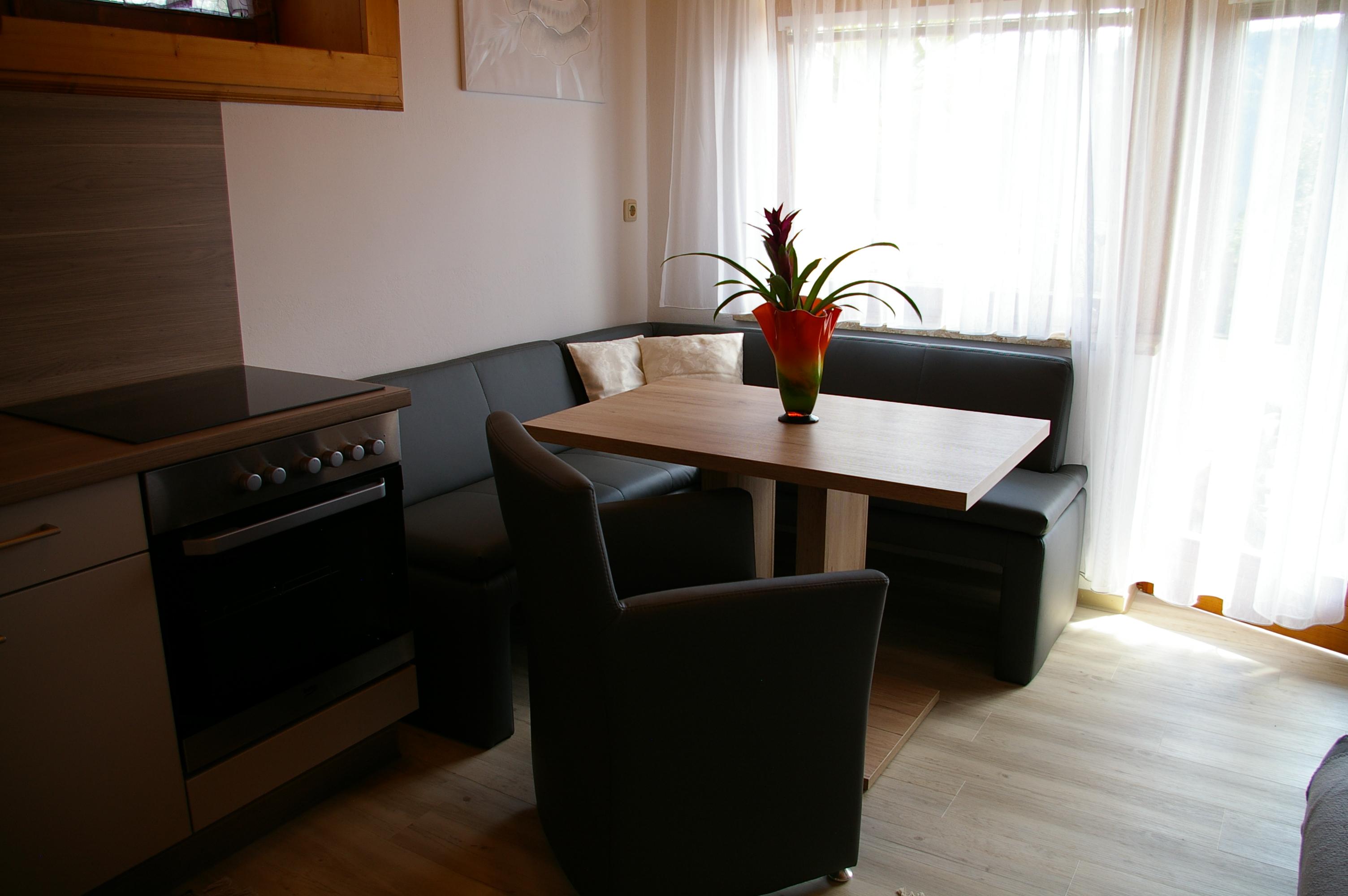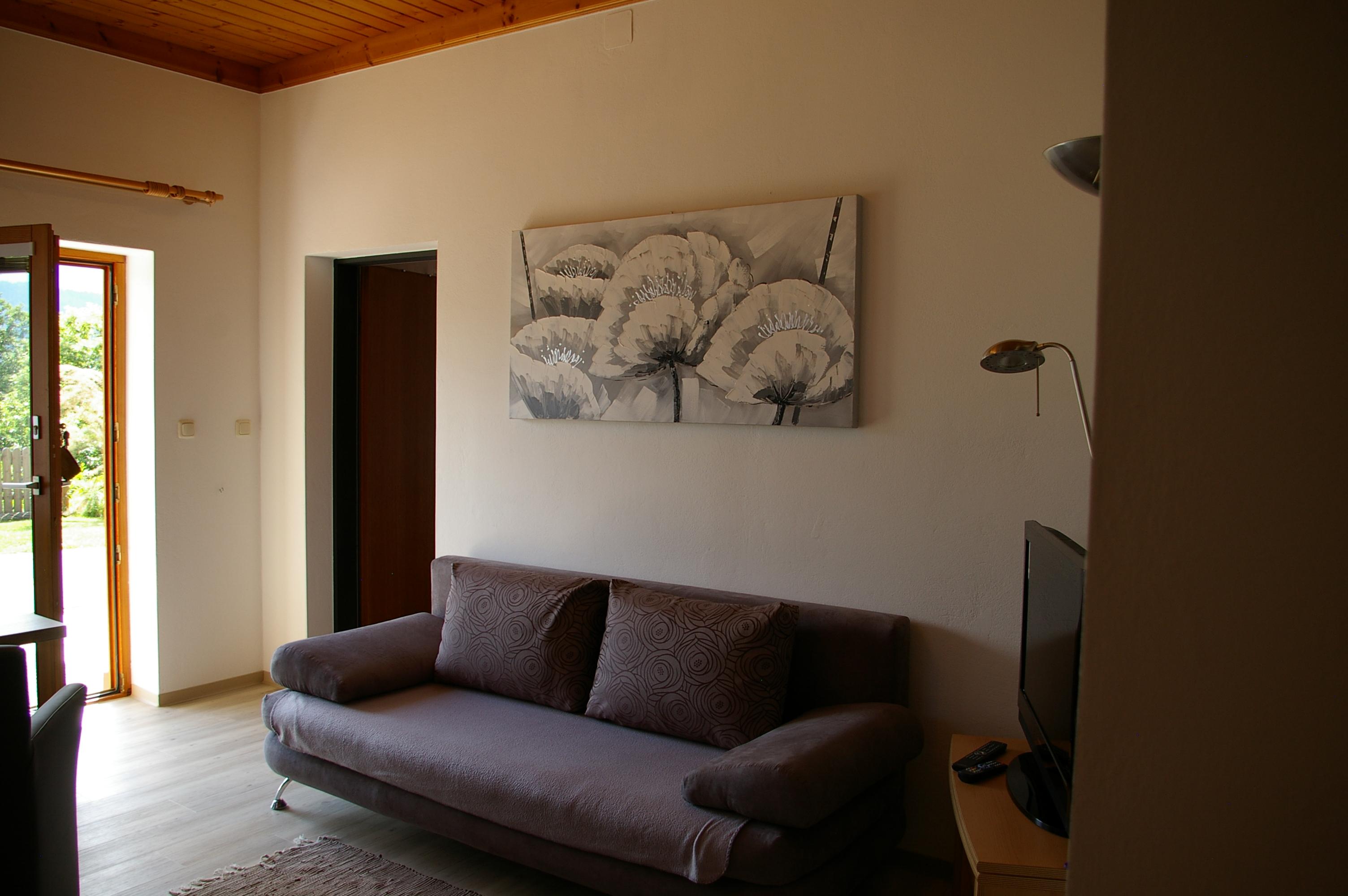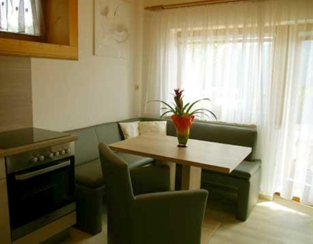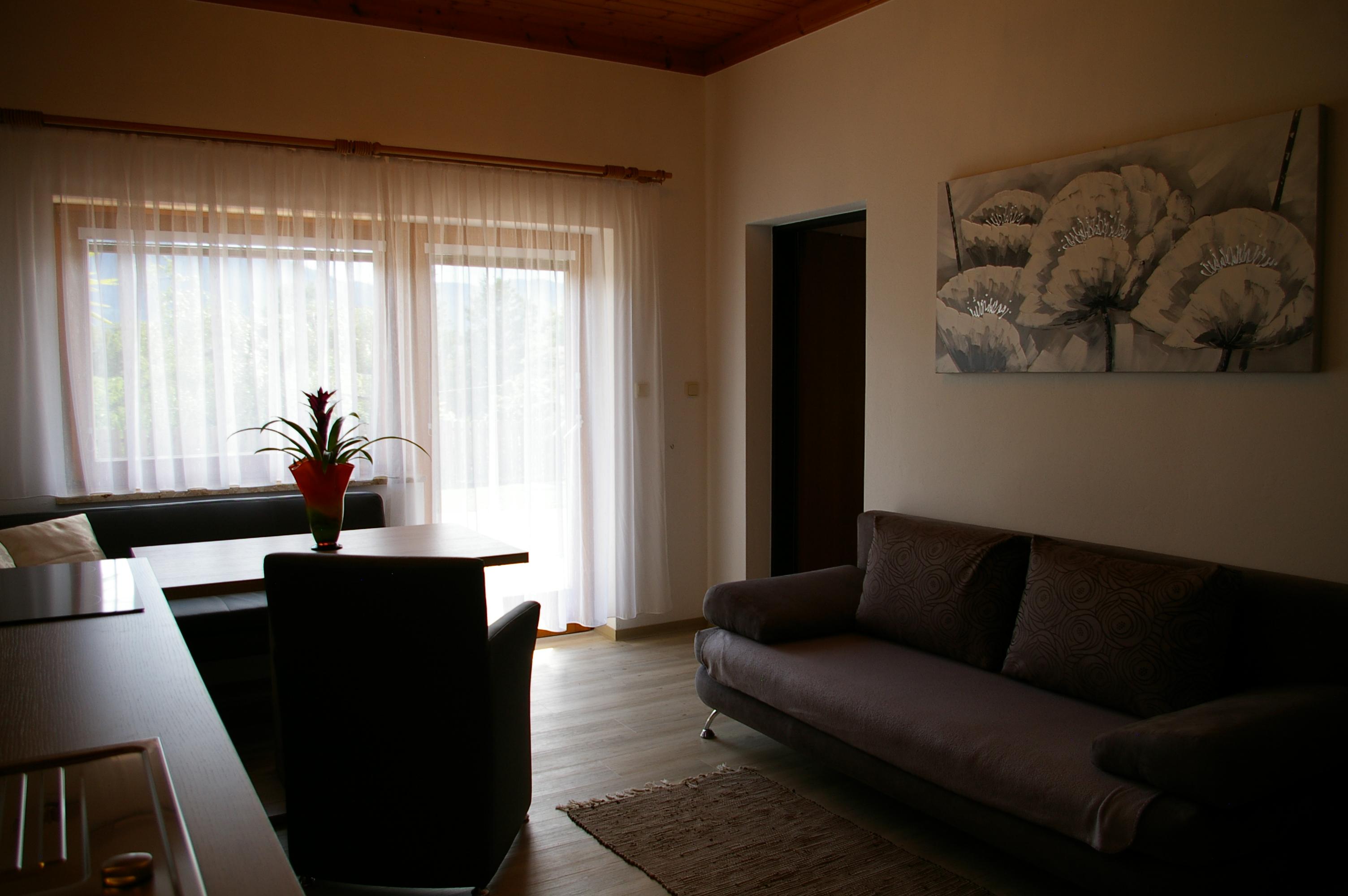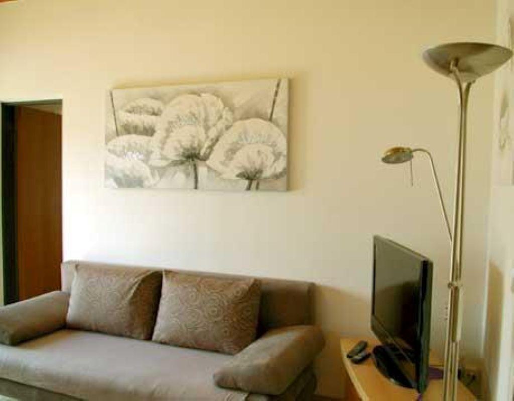 Das 38 m2 große Appartement besteht aus einer Wohnküche, einem Schlafzimmer, Dusche und WC. Die helle und geräumige Wohnküche ist mit einer gemütlichen Essecke eingerichtet und verfügt über eine Sonnenterrasse. Der Küchenblock besteht aus einem Spülbecken, einem Herd mit Backrohr, Mikrowelle sowie einem Kühlschrank mit Gefrierfach. Neben dem gemütlichen Sofa befindet sich der Fernseher mit Sat - TV und einer Leselampe. Das geräumige Schlafzimmer bietet genug Staumöglichkeit. Das ganze Appartement ist beheizbar.