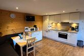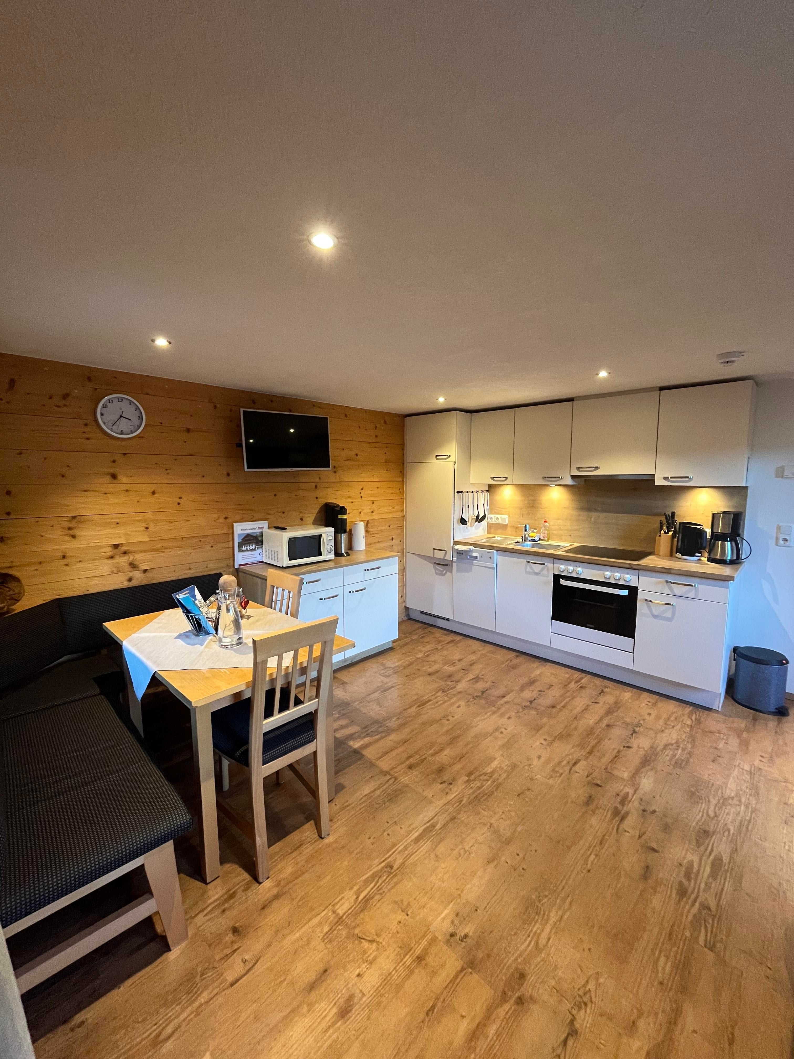 1 Schlafzimmer mit Doppelbett mit Blickrichtung nach Osten. Von dort gelangt man ins Badezimmer mit DU/WC. Mit komplett ausgestatter Wohnküche mit einer ausziehbaren Couch für 2 weitere Personen.