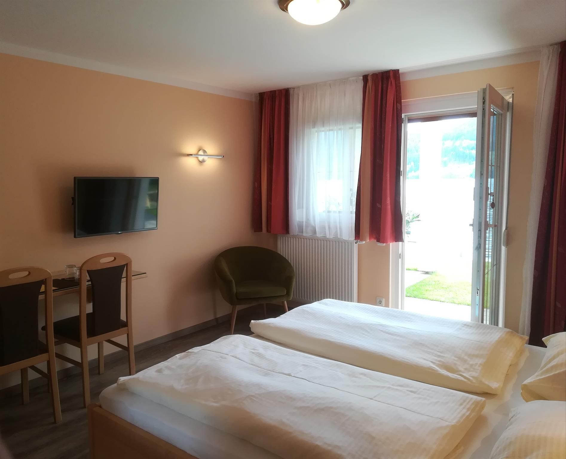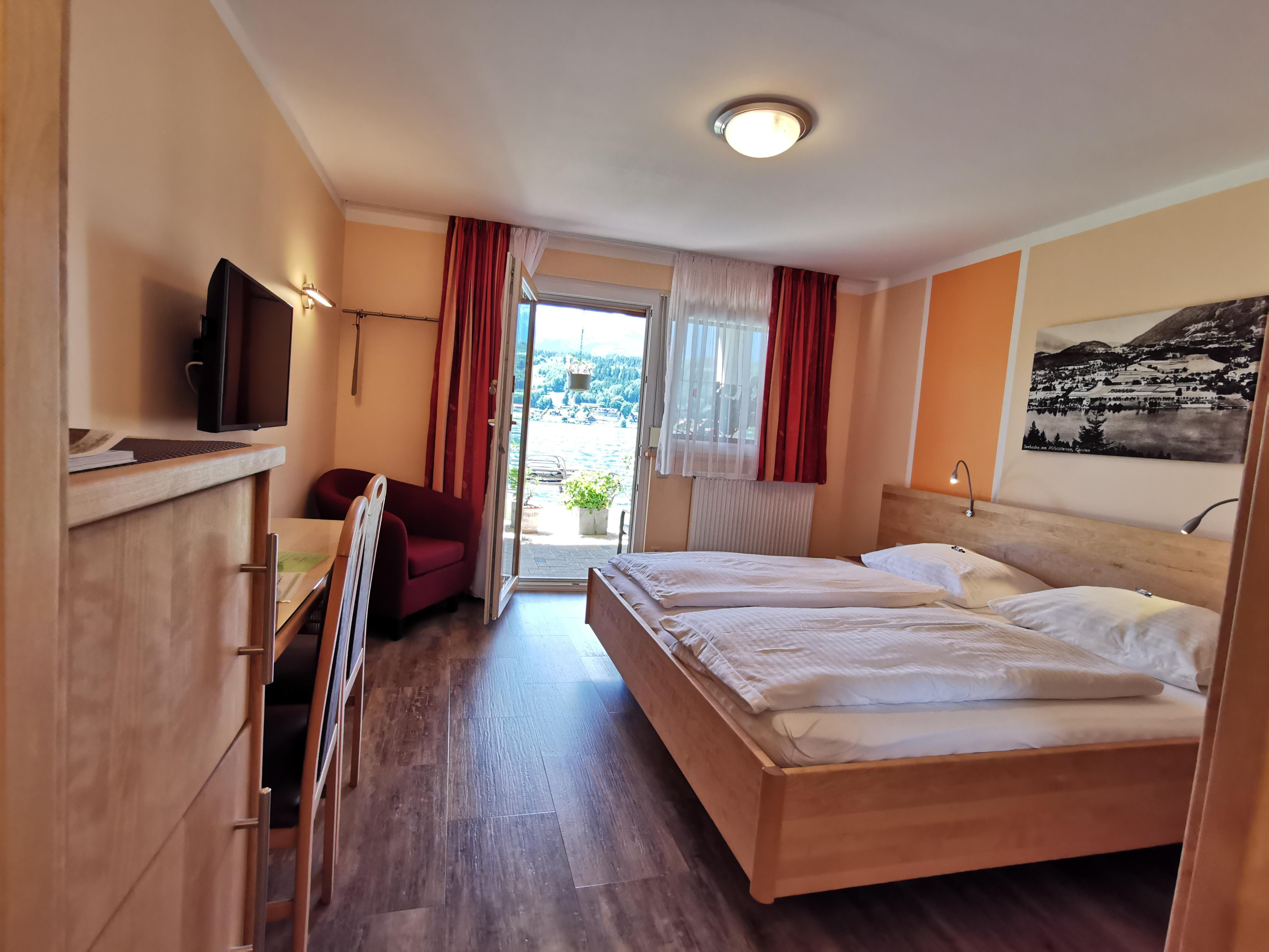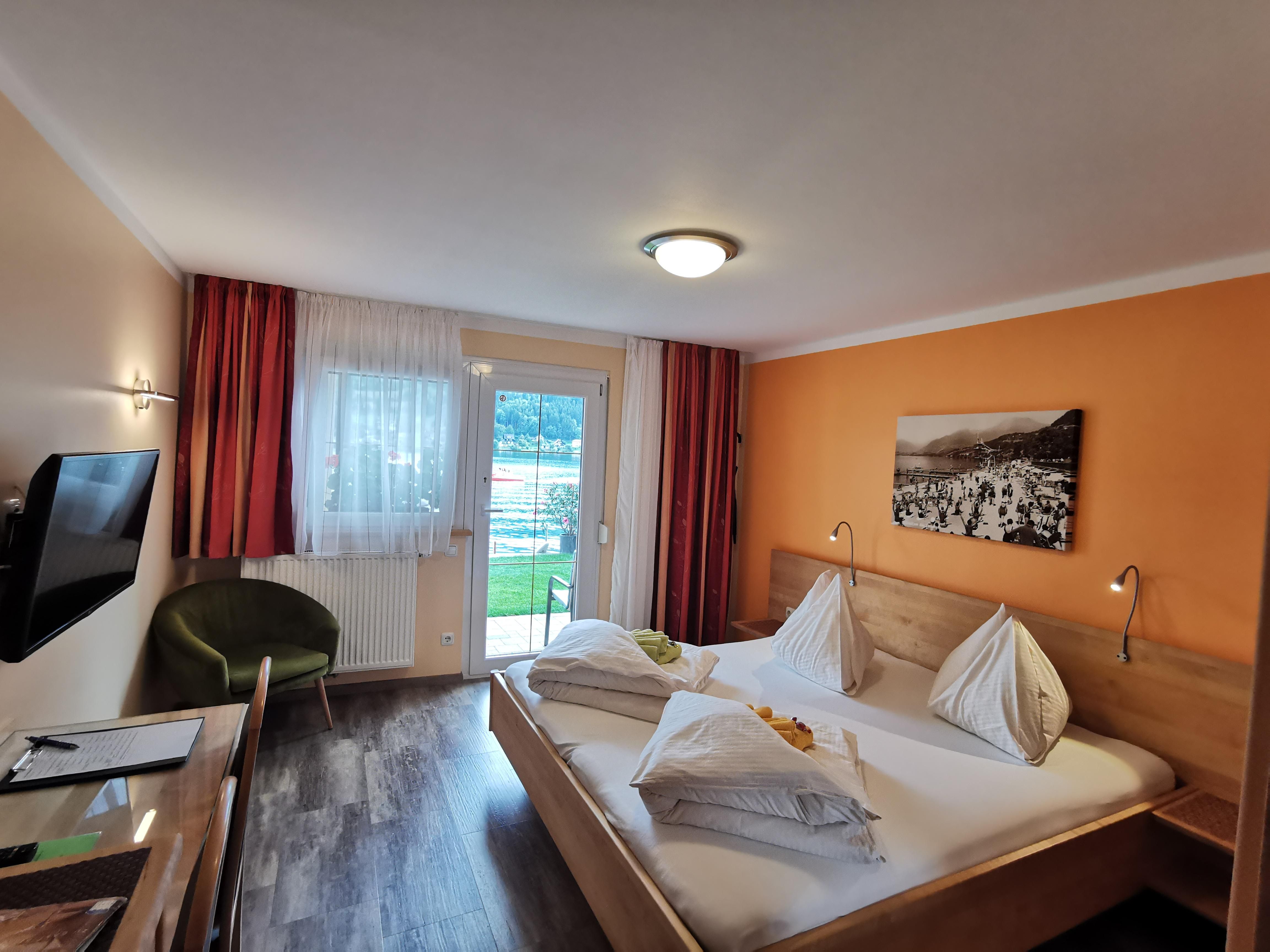 Ruhige Doppelzimmer mit Seeblick, DU/WC und Sat-TV, Minikühlschrank, Safe und W-Lan