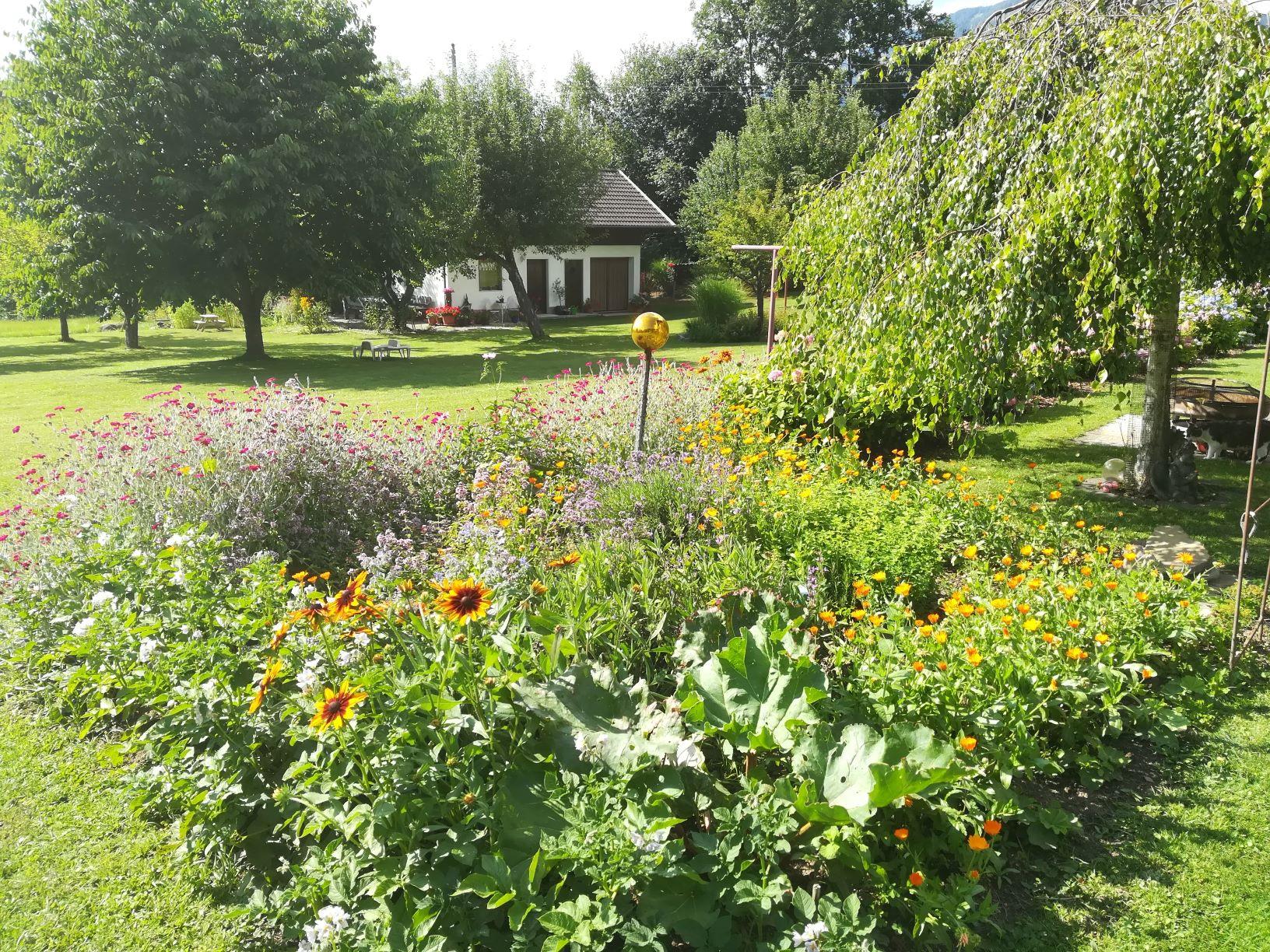 Der 2500 m² große Garten wird gerne zum spielen, herumtollen, entdecken oder einfach zum entspannen und genießen genutzt.