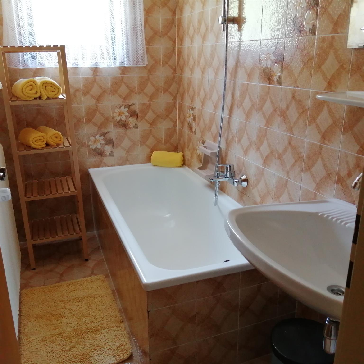 Die 75 m² Wohnung verfügt über zwei große separate Schlafzimmer, einem Balkon mit Gartenmöbel, einem Badezimmer mit Badewanne und einem separaten WC sowie WLAN.