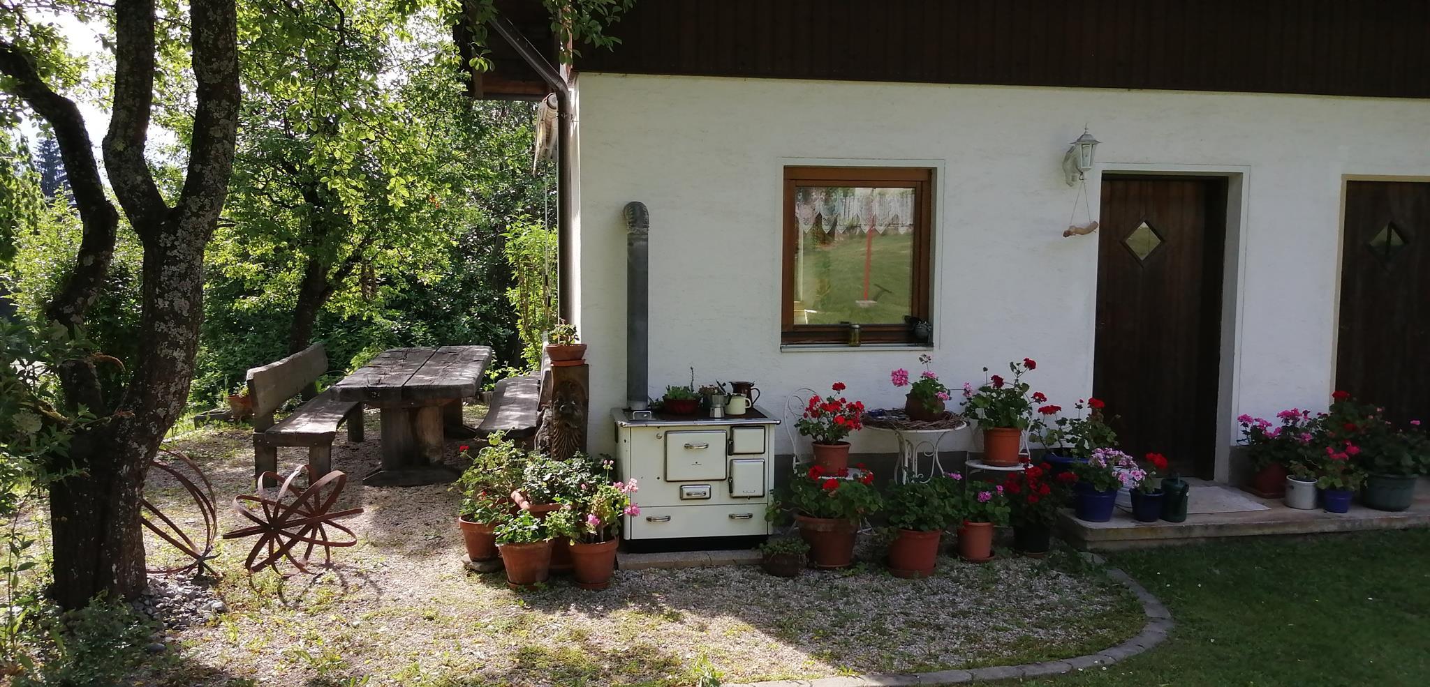 Ein Gartenhaus mit Küche und Grillplatz ist ideal um schöne Familienabende zu gestalten.