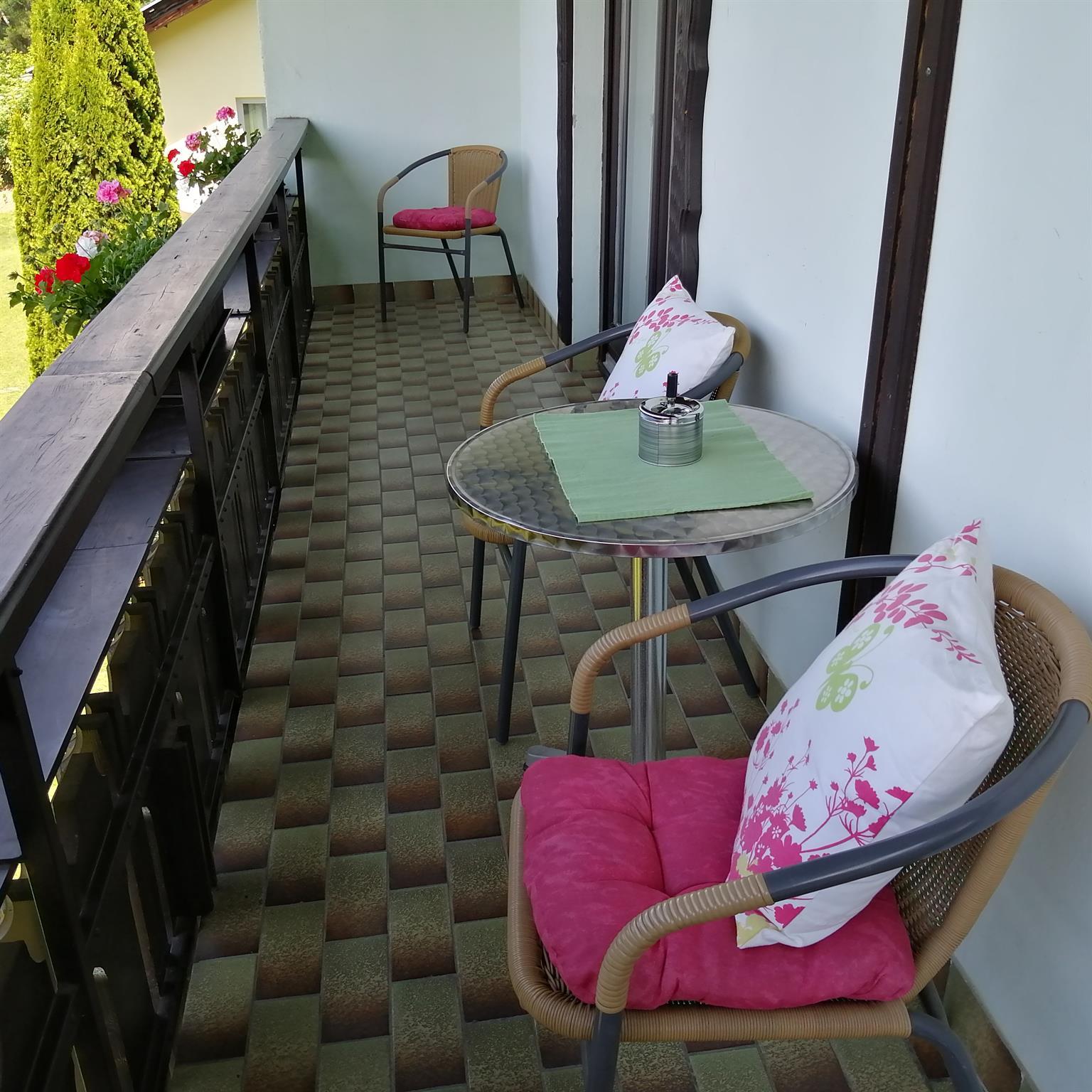 Ein Balkon mit Blick in die traumhafte Landschaft lädt ein um durchzuatmen.