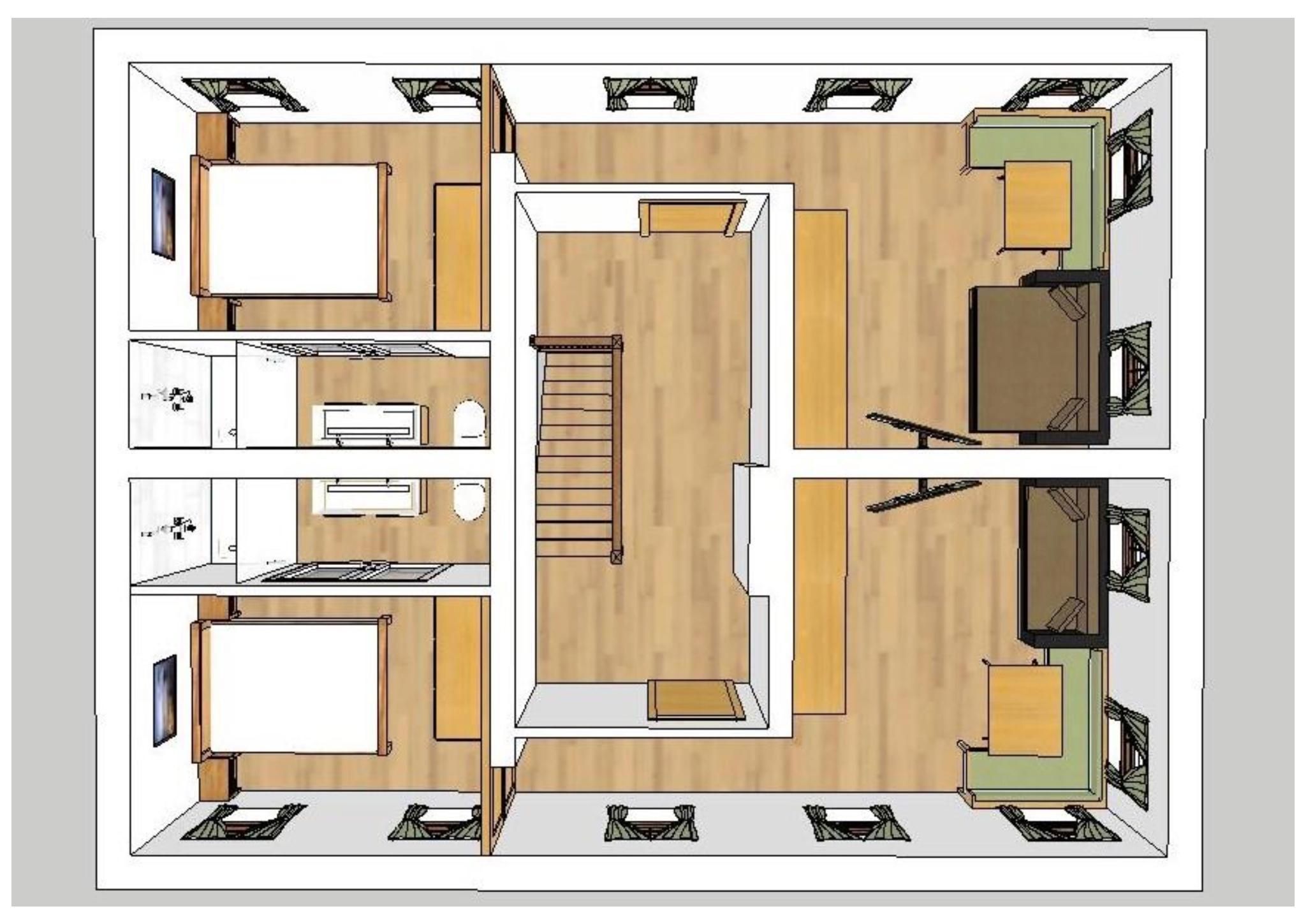 1 Schlafzimmer mit Doppelbett mit Blickrichtung nach Westen.