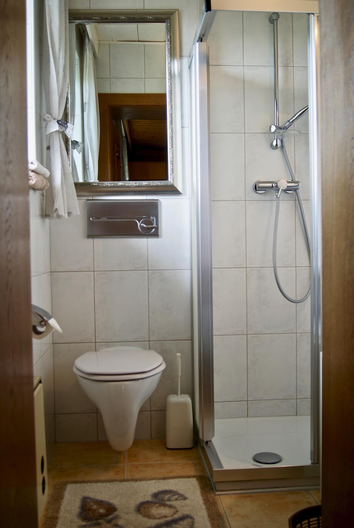 Gemütliches Schlafzimmer mit Doppelbett und Dusche/WC/Waschbecken