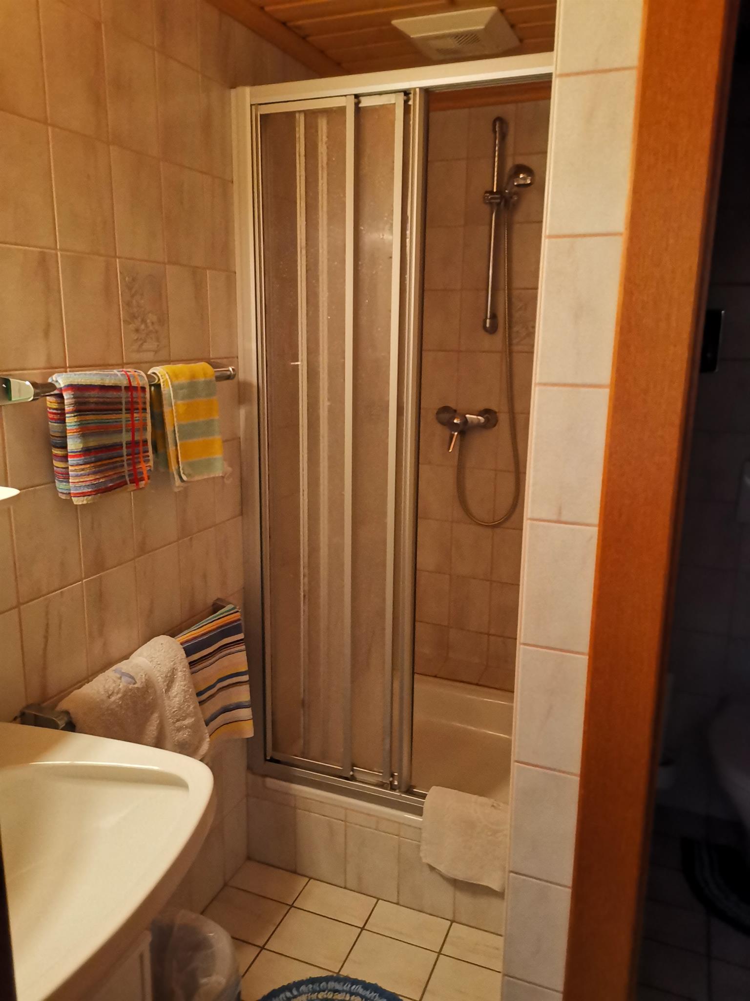 Dusche , WC sowie Balkon.Bettwäsche und Handtücher.