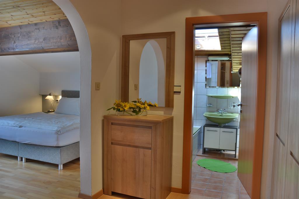 Die Zimmer verfügen über einen schönen Ausblick Richtung Süden und sind mit einem Balkon ausgestattet. Alle Zimmer sind mit Dusche/WC, Föhn und Flat-Sat-TV ausgestattet. Die Zimmer sind sehr geräumig, wodurch auch genügend Platz für Kinderbetten zur Verfügung steht. Selbstverständlich können Sie unser Gratis WLAN nutzen. Die Zimmer wurden erst kürzlich mit neuem Inventar ausgestattet (Boxspringbetten in 4 Zimmern). Im Vorraum haben Sie die Möglichkeit sich mit kühlen Getränken für die heisse Nächte oder einen Espresso zu versorgen.