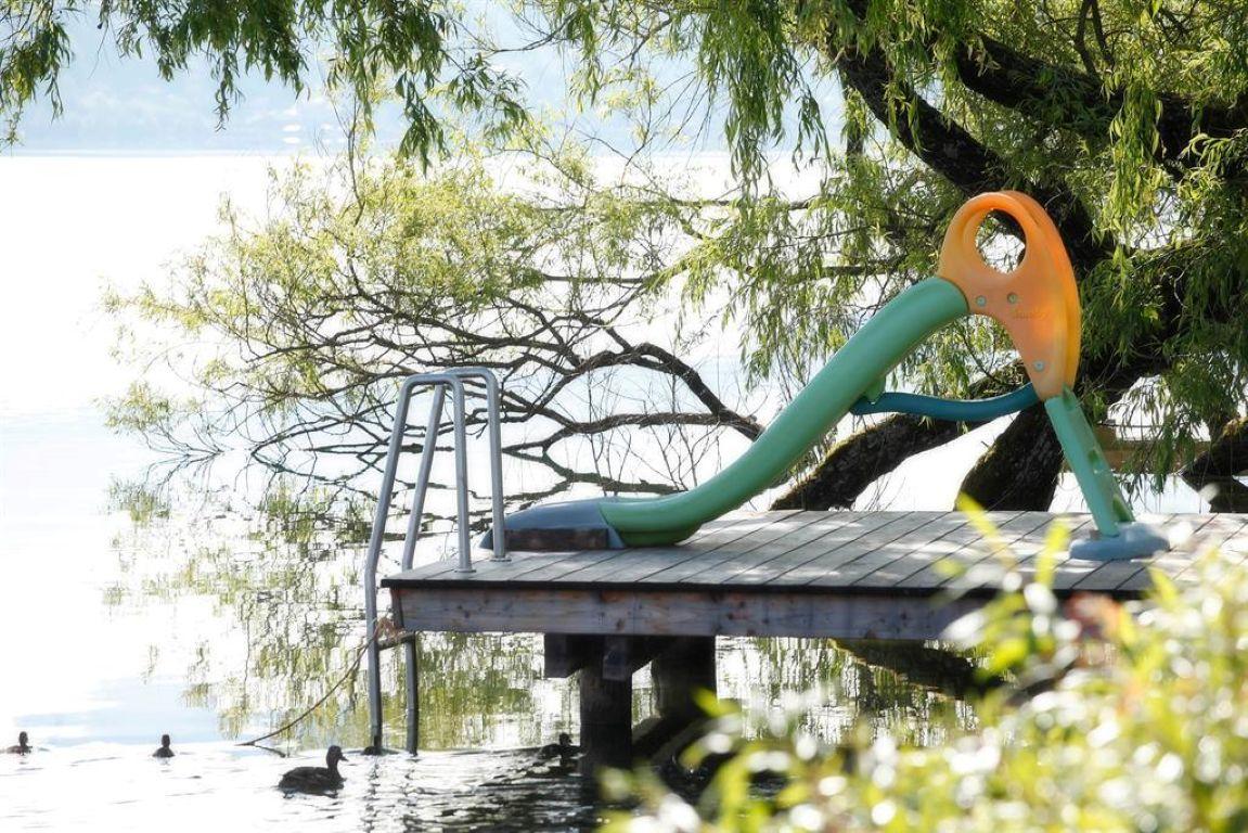 Strand: Sonnenliegen, Sonnenschirme, Gartenmöbel, Ruderboote, Tretboot, Tischtennis, Kinderspielplatz, kl. Wasserrutsche, Sprungbrett