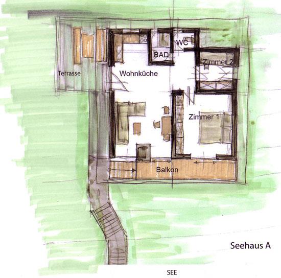 Seehaus mit 1 DZ, 1 Zimmer mit Stockbett, Duschraum, WC extra, sehr schöner, heller Wohnraum mit Satellitenfernsehen, offener Kamin zur Gemütlichkeit, Küche-komplett eingerichtet - Geschirrspüler, Balkon und Terrasse mit wunderschöner Aussicht auf den Millstättersee und den Nockbergen. W-LAN zur Verfügung. Waschmaschine und Wäschetrockner.