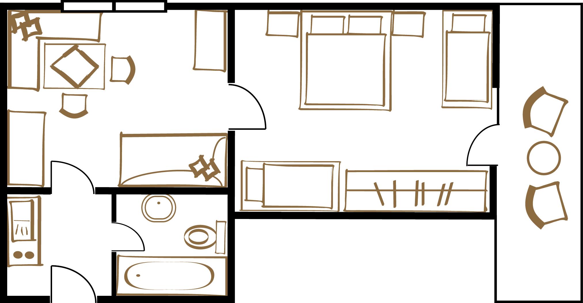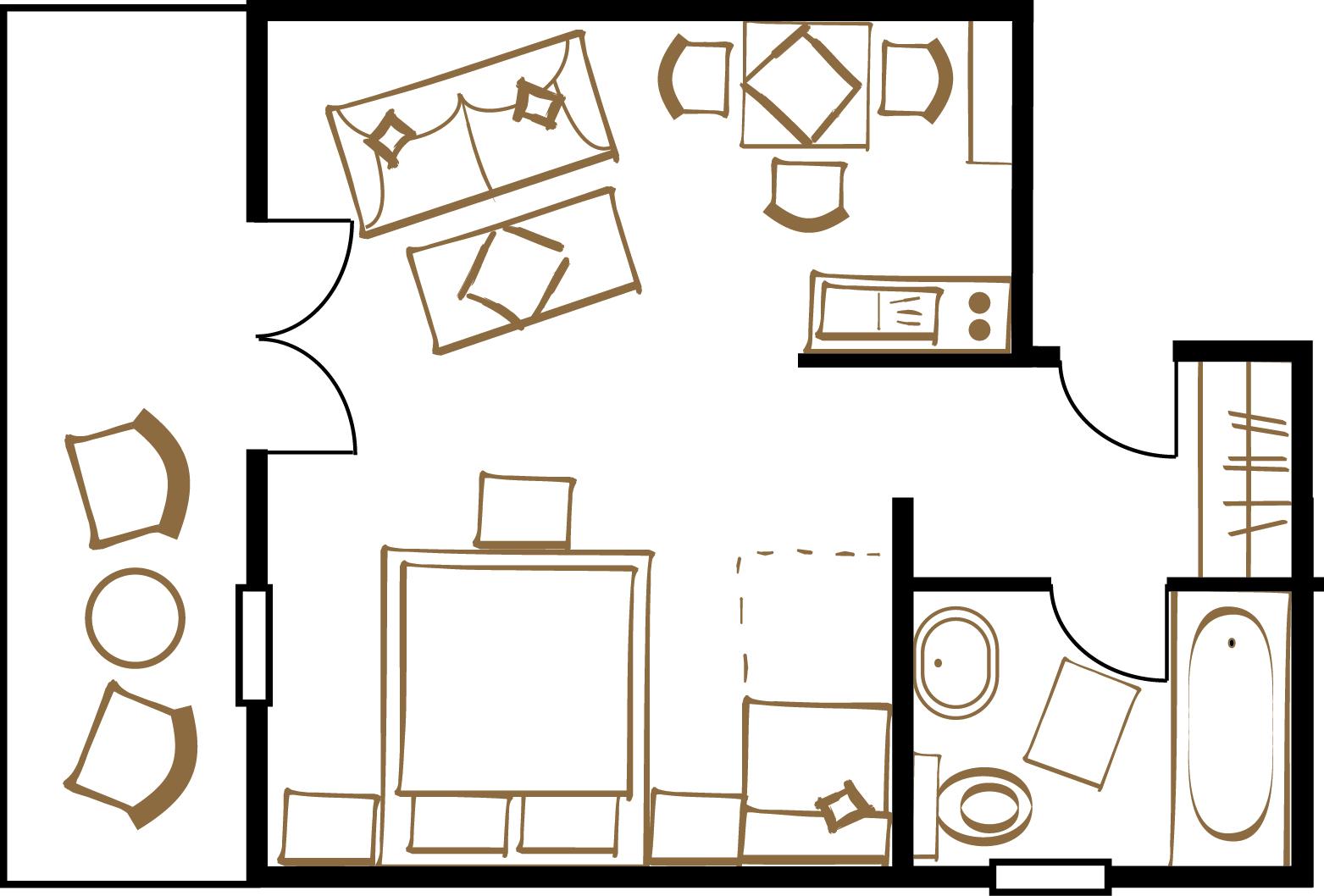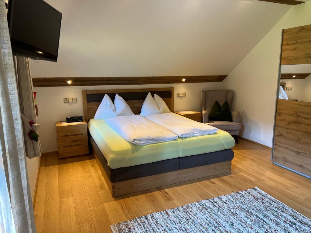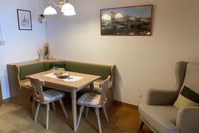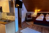 Ausstattung: großzügiger Wohn-Schlafraum mit Doppelbett und ausziehbarer Sitzgruppe, Kochnische mit Esstisch, Bad mit Badewanne mit Duschwand und Toilette, Balkon mit Tisch und Stühlen und Liegestühlen, TV mit Sat und Radio Frühstück: im Kreise der Lieben in der Ferienwohung mit hauseigenen Produkten oder in Gesellschaft im benachbarten Hotel Kärntnerhof