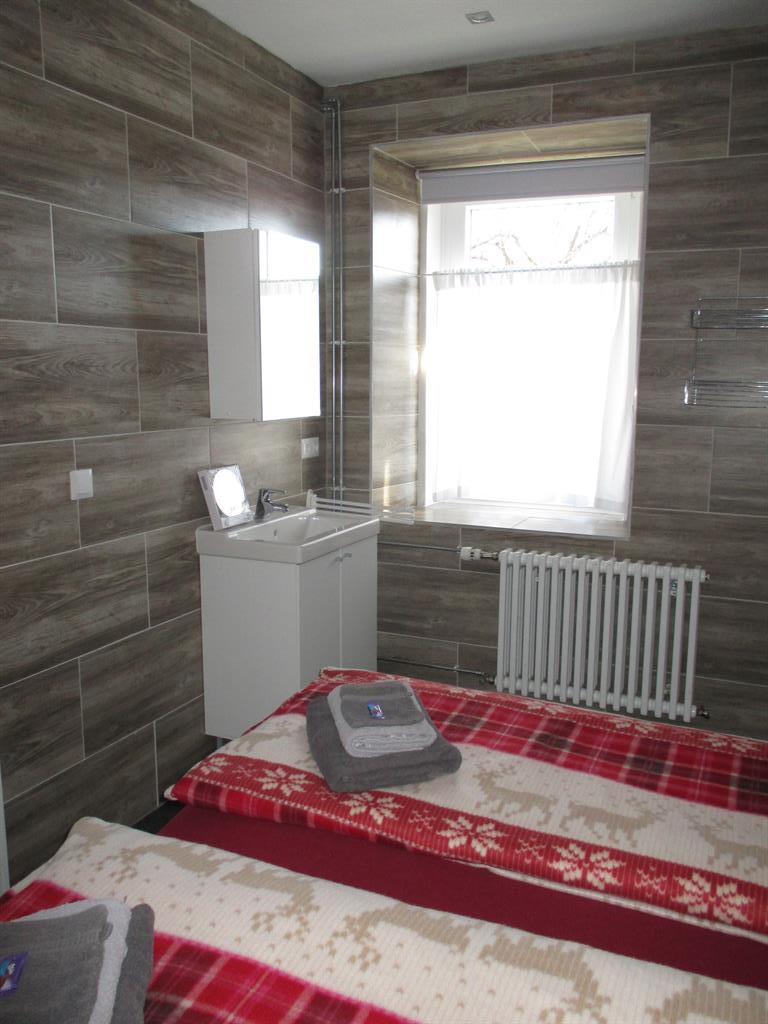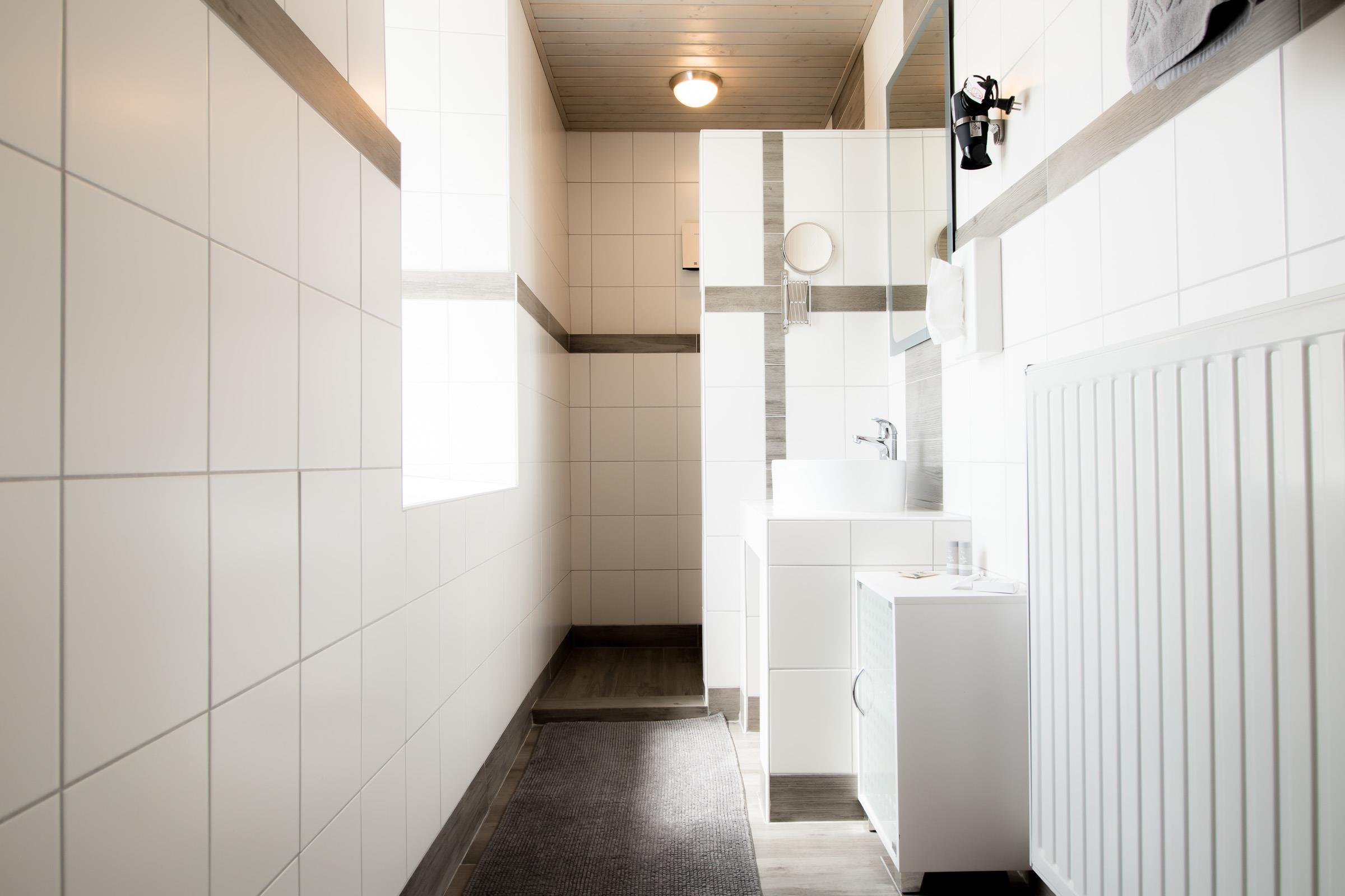 Außerdem gibt es eine Duschkabine und einen Waschtisch. Das WC ist seperat .