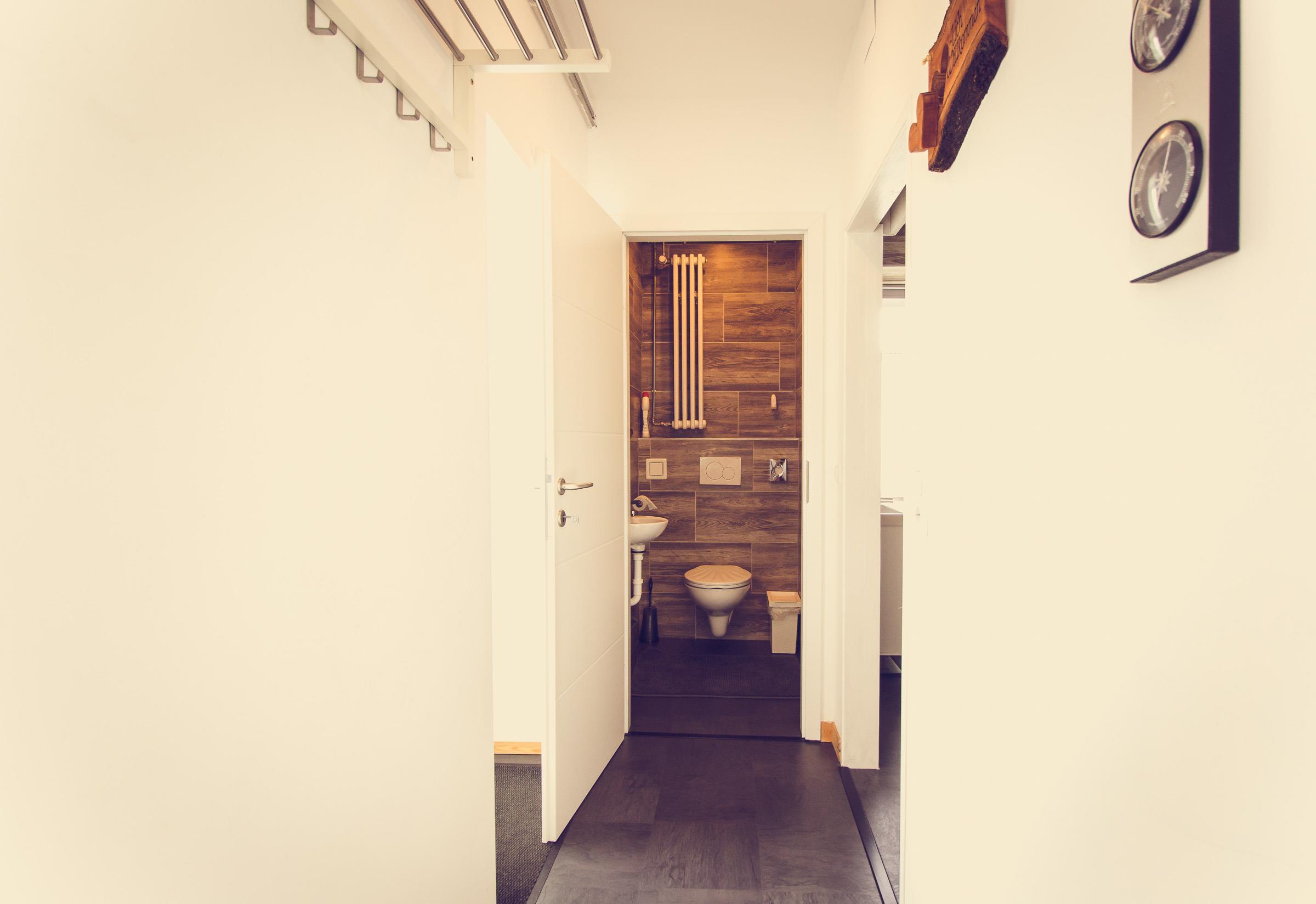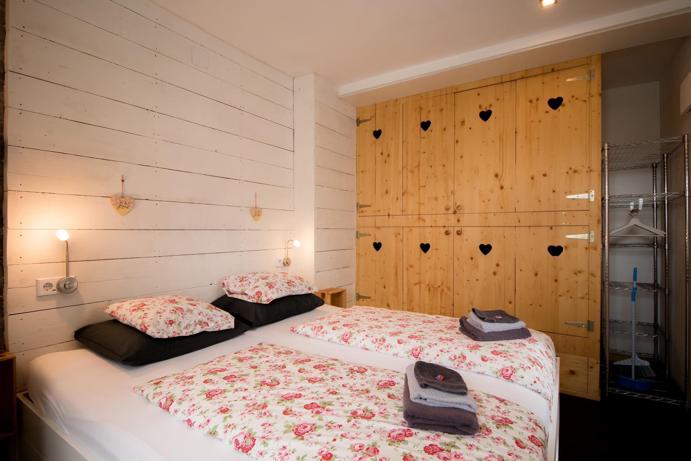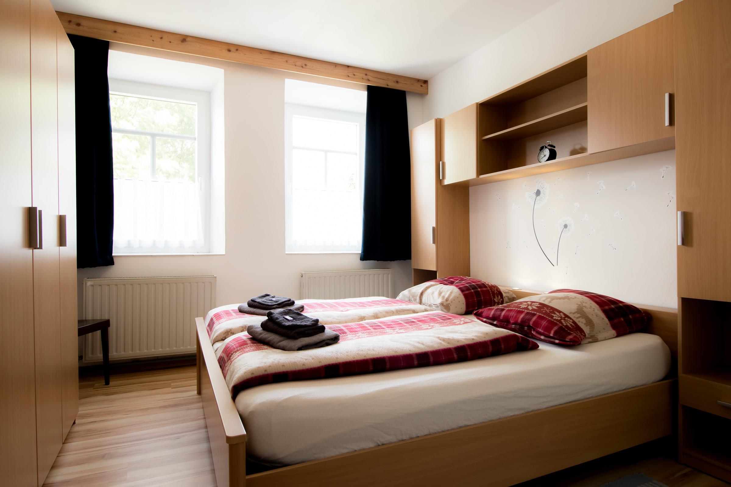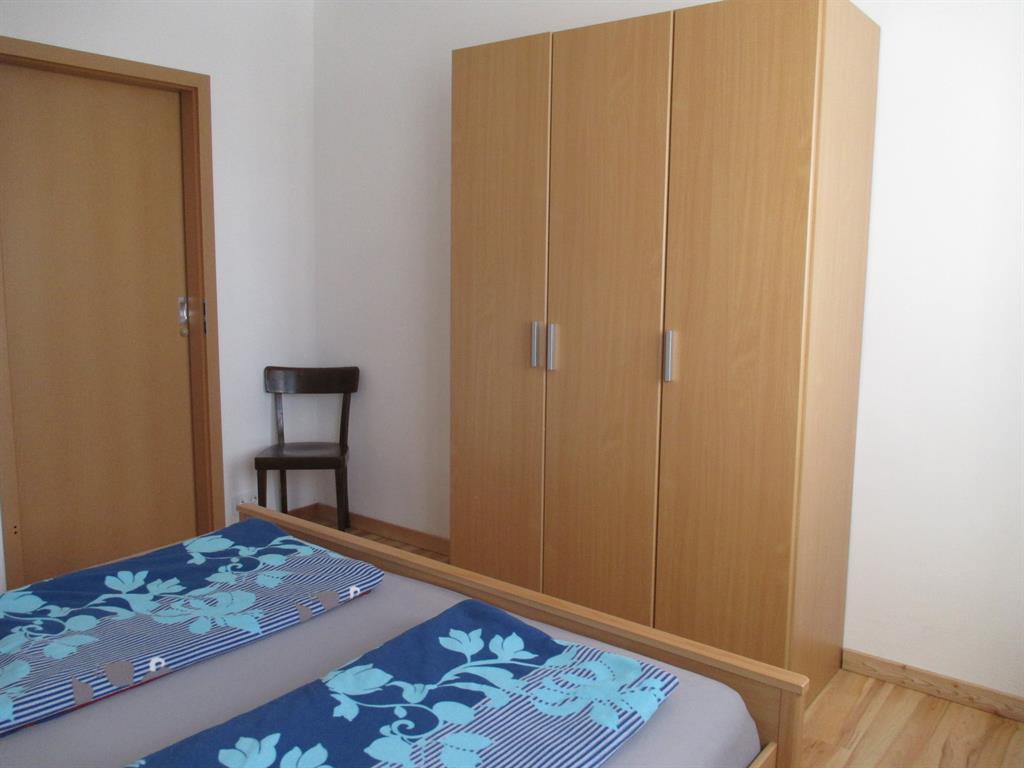 Im Schlafzimmer von Appartment 1 steht ein Doppelbett (180×200), und ein großer Kleiderschrank. Das Badezimmer verfügt über eine Dusche, einen Waschtisch und eine Toilette.