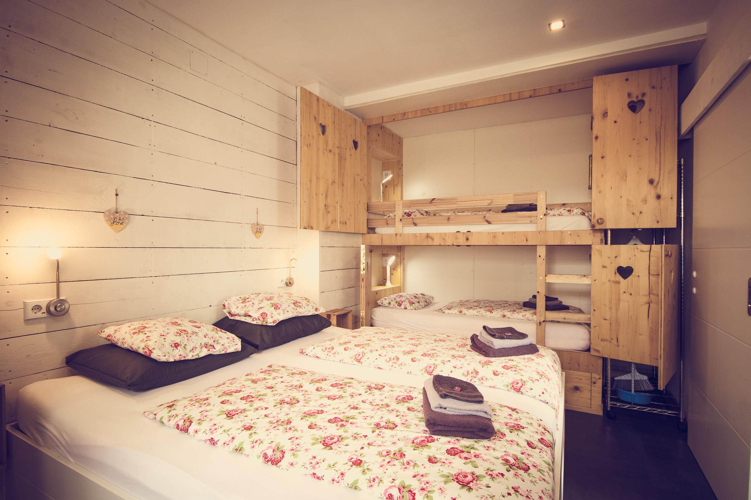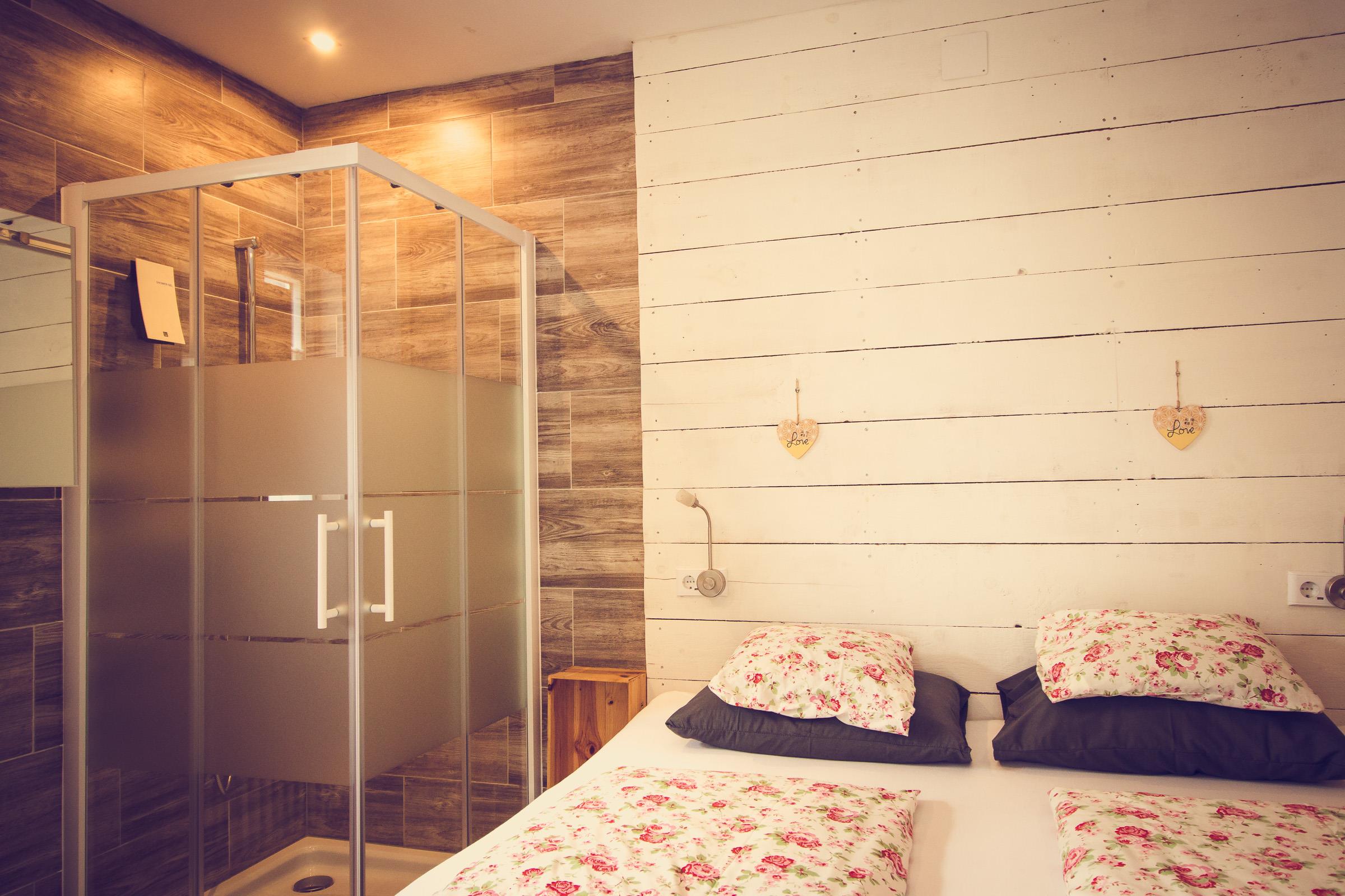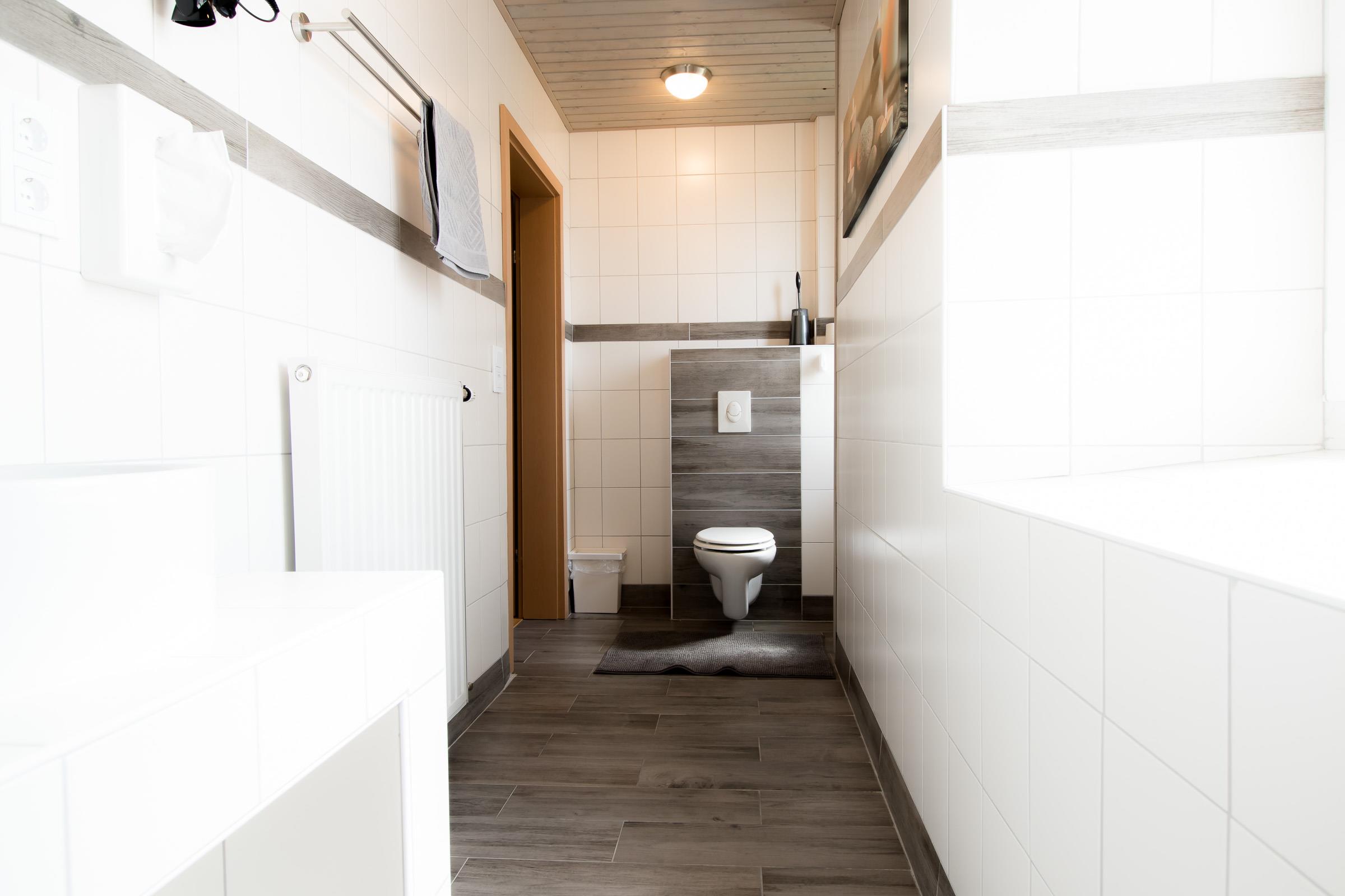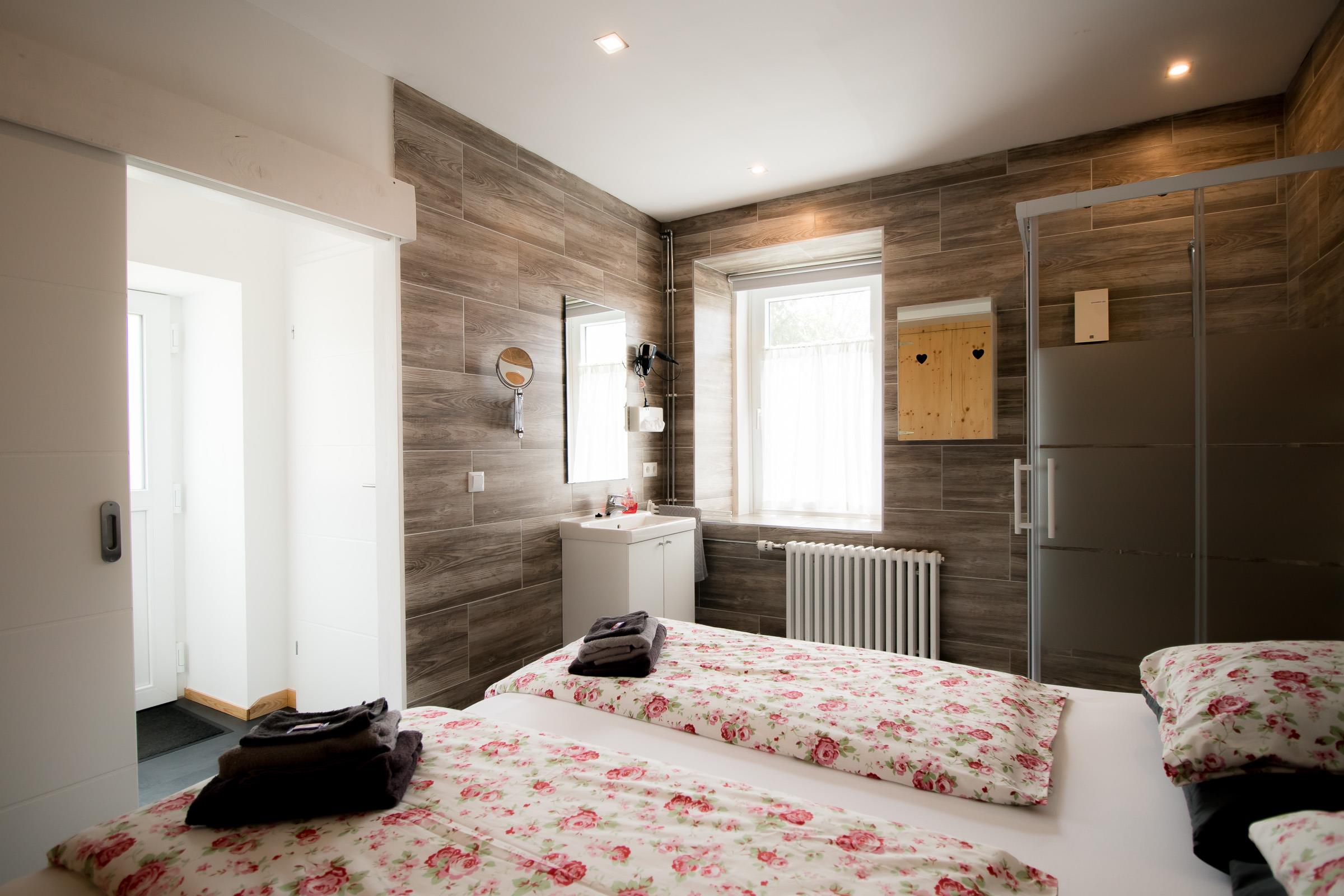 Im Schlafzimmer von Appartment 1 steht ein Doppelbett (180×200), und ein großer Kleiderschrank. Das Badezimmer verfügt über eine Dusche, einen Waschtisch und eine Toilette.