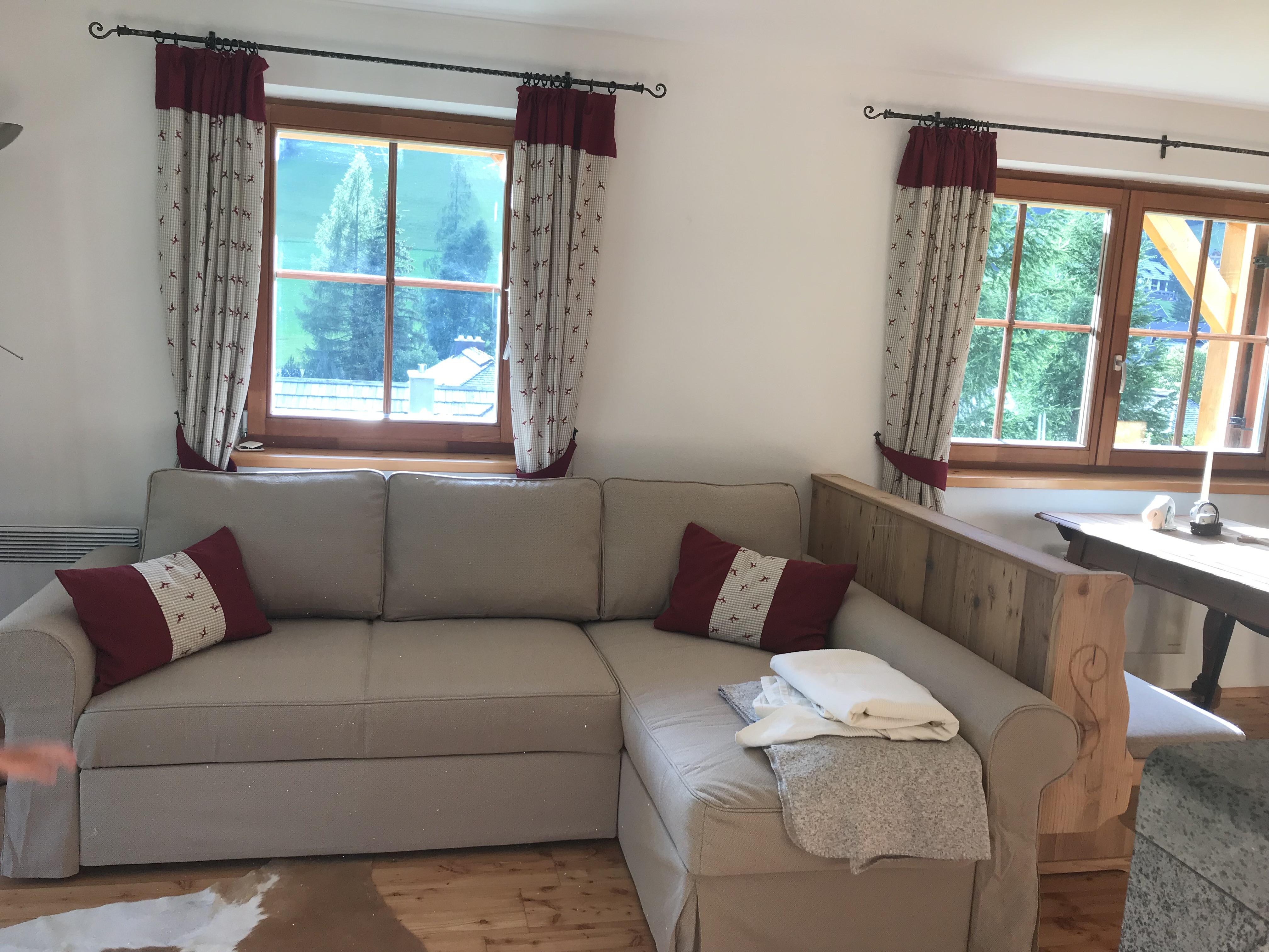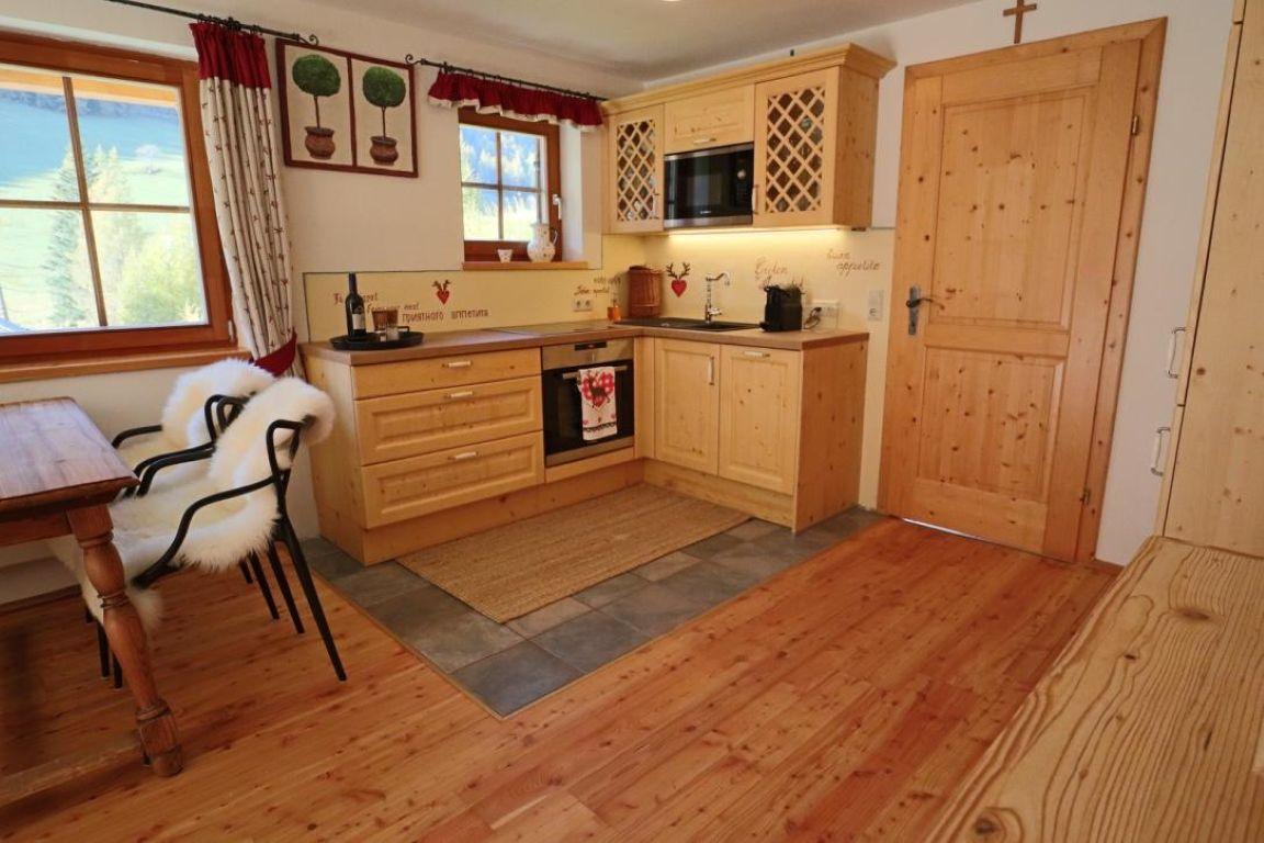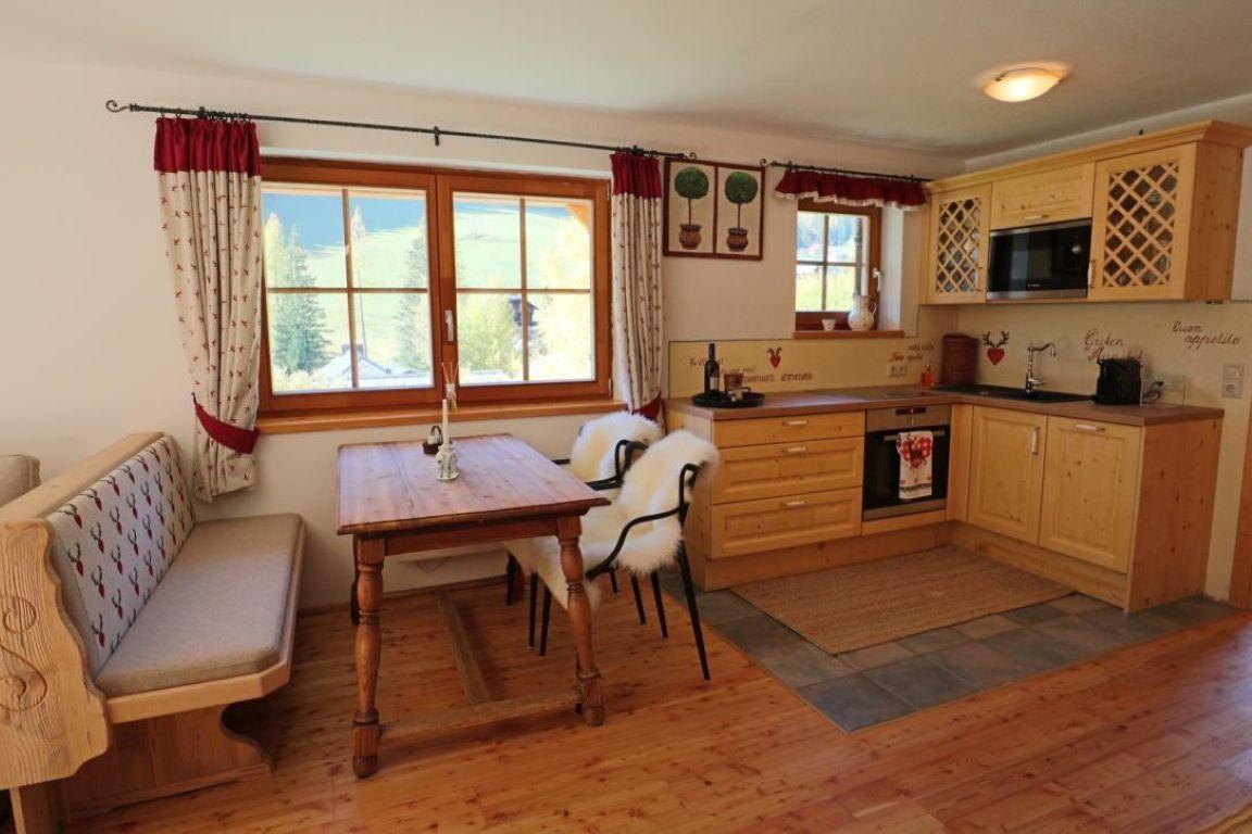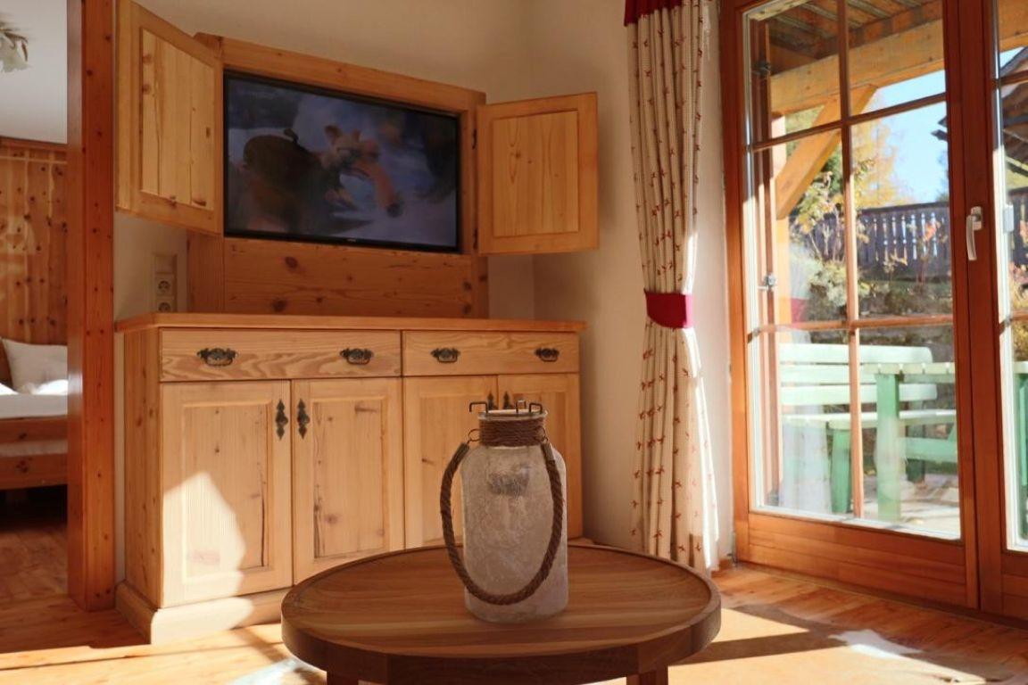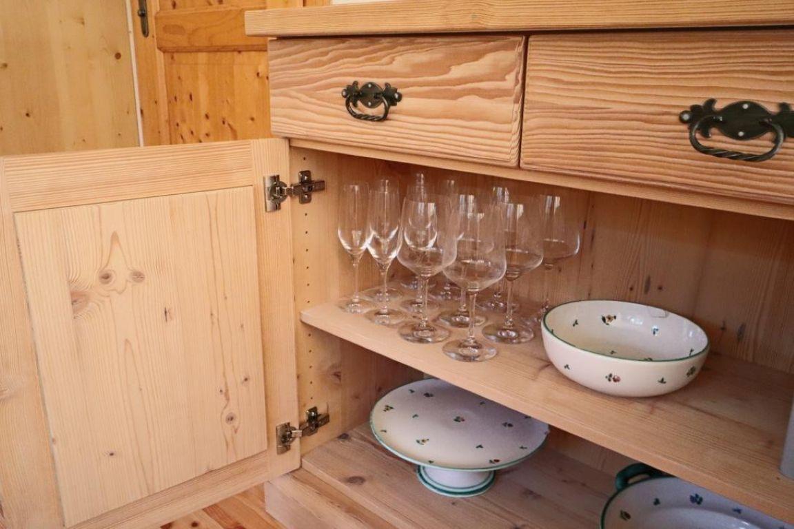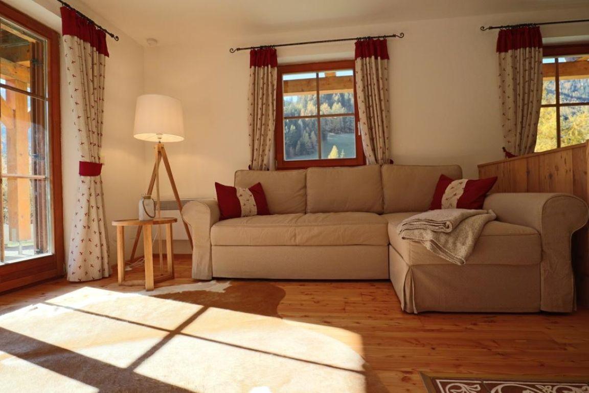 Die Wohnung ist erstklassig und exklusiv ausgestattet. Alle Böden sind aus Lärchenholz, alle Möbel aus Vollholz massiv. Das Schlafzimmer besteht zum größten Teil aus Zirbenholz.
