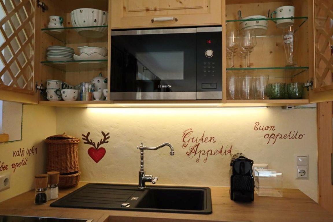 Die neue Küche ist hochwertig ausgestattet und verfügt über einen Backofen, Mikrowellenherd, Kühlschrank mit Gefrierfach, Kaffeemaschine (Nespresso und Filter, je nach Geschmack), Milchschäumer, Wasserkocher und Brötchentoaster. Damit Sie es sich besonders gemütlich machen können, haben wir im Wohnraum zusätzlich zur Elektroheizung, einen Kaminofen mit Sichtfenster, der sehr einfach zu heizen ist.