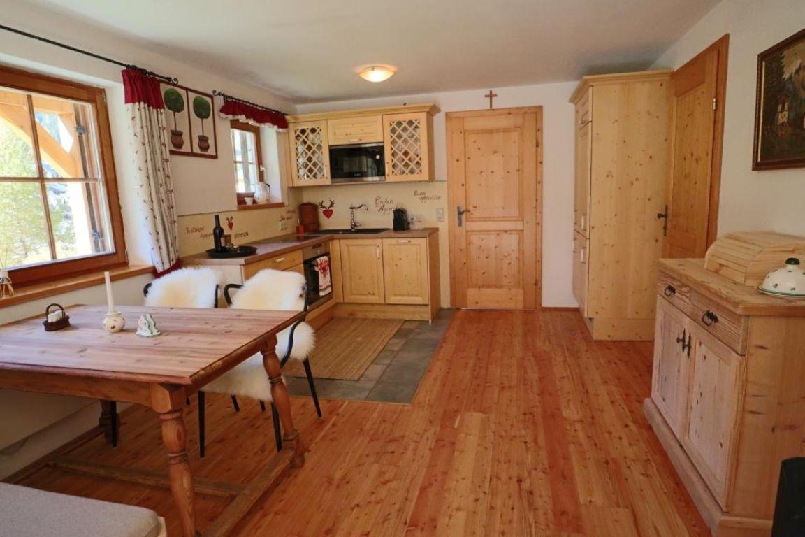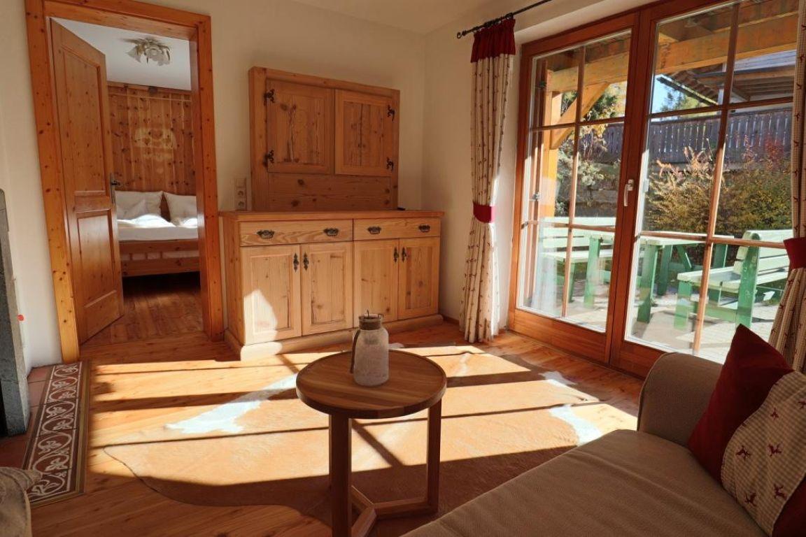 Zur Wohnung gehört auch ein Saunahaus und ein Skistall.