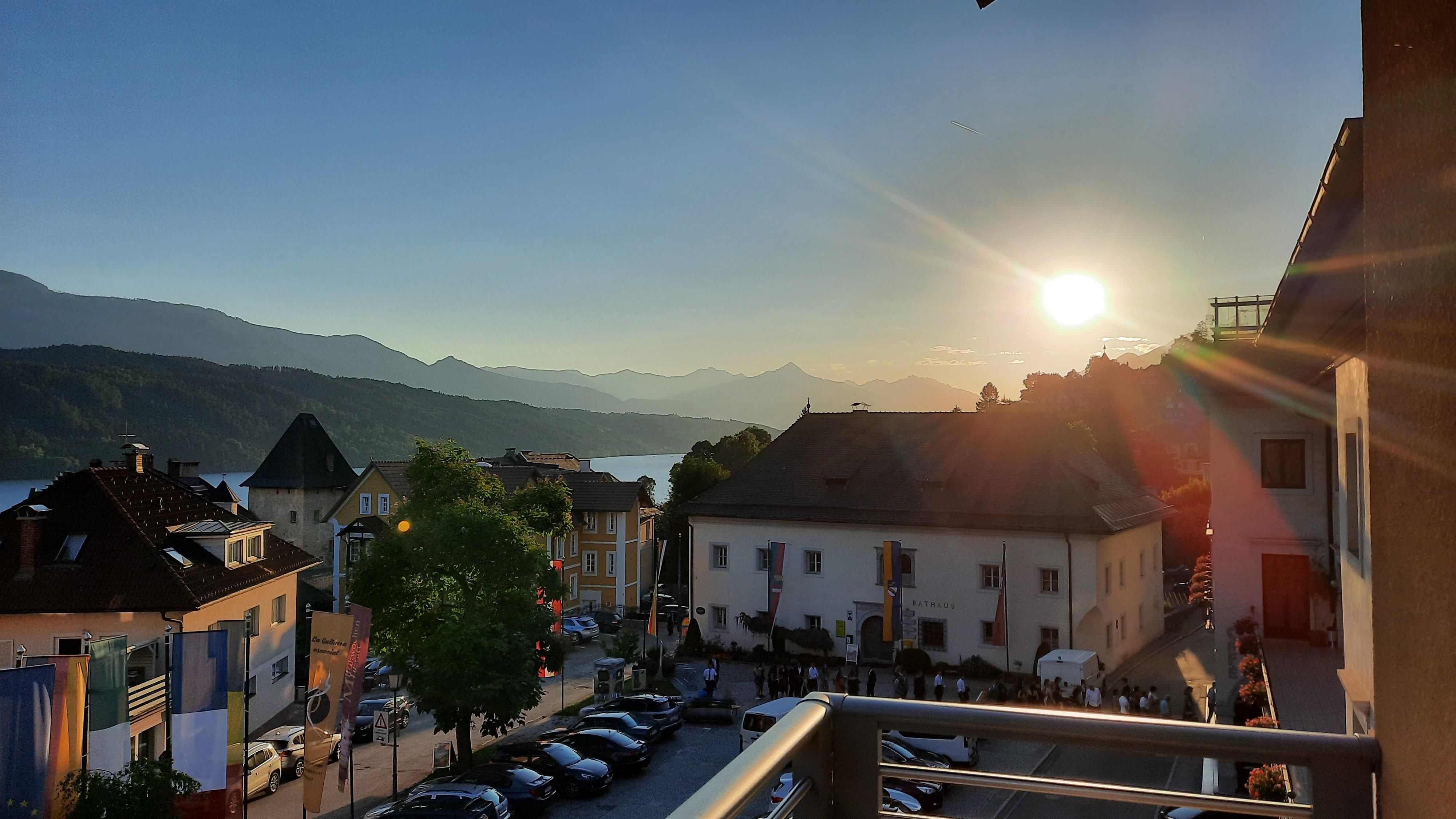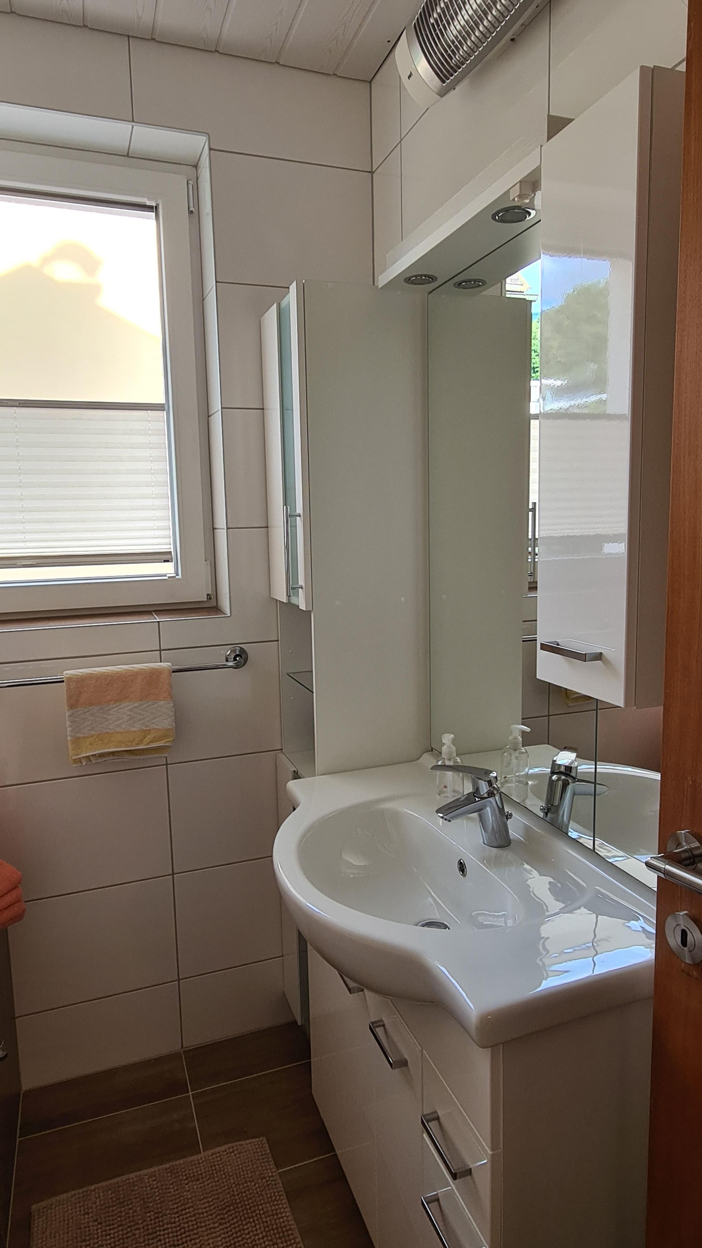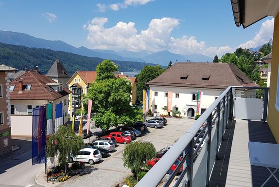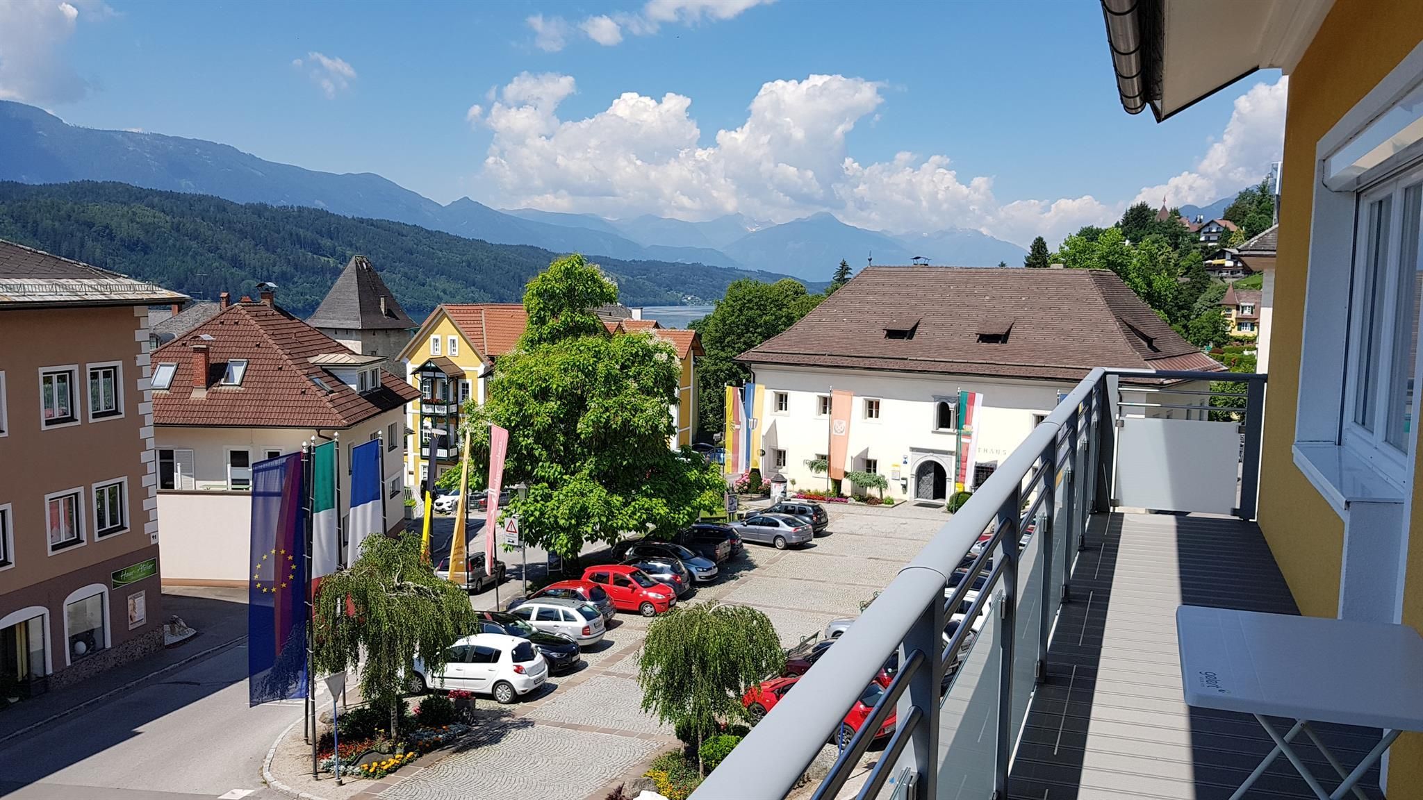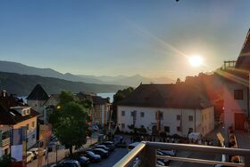 1 Schlafzimmer und das Wohnzimmer liegen südseitig mit Balkon (Seeblick), das 2. Schlafzimmer und die Küche sind nordseitig gelegen (ruhig mit Blick auf die Terrasse mit dem großen Tannenbaum).