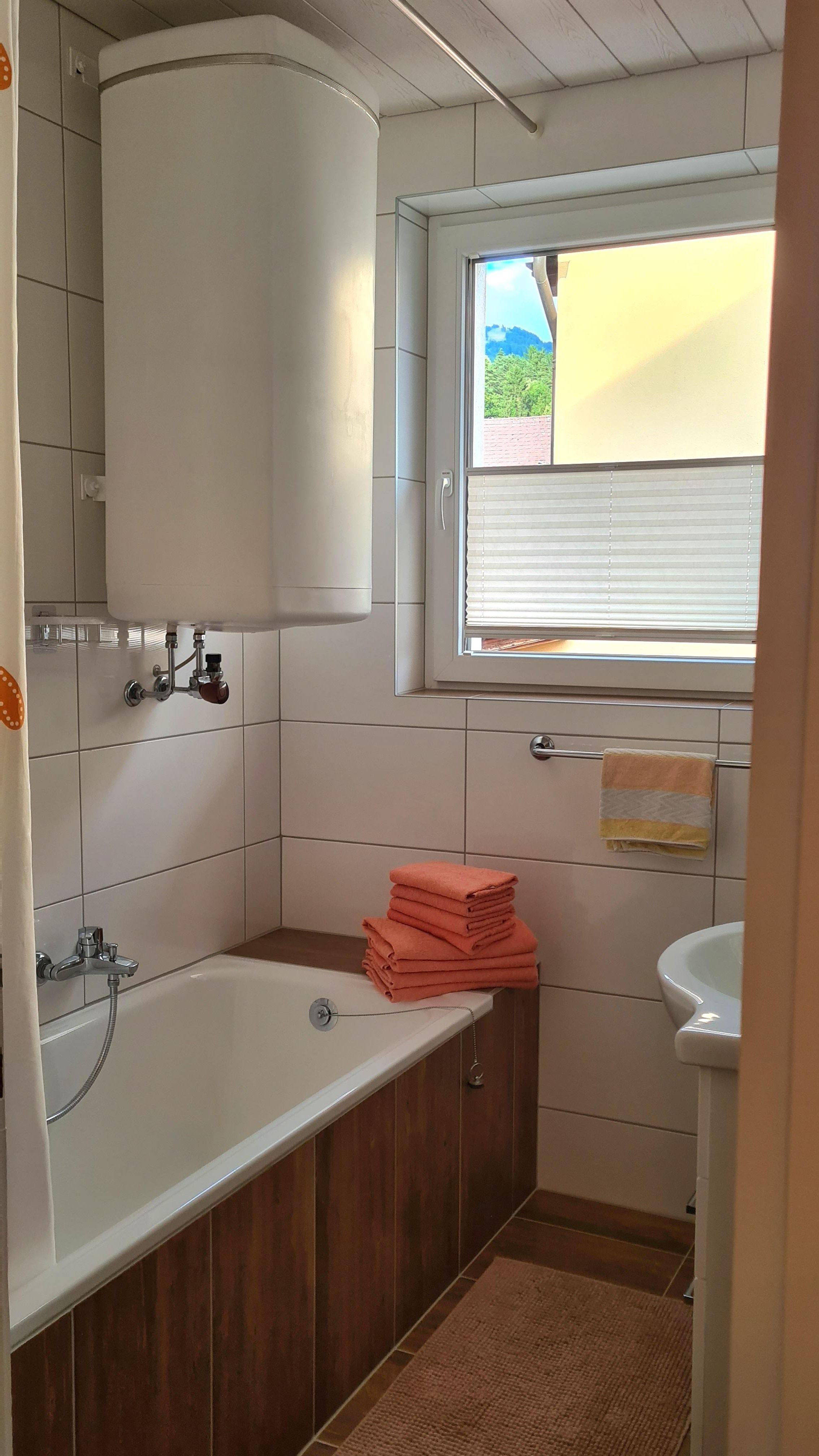 Bettwäsche, Hand- und Badetücher sind vorhanden.