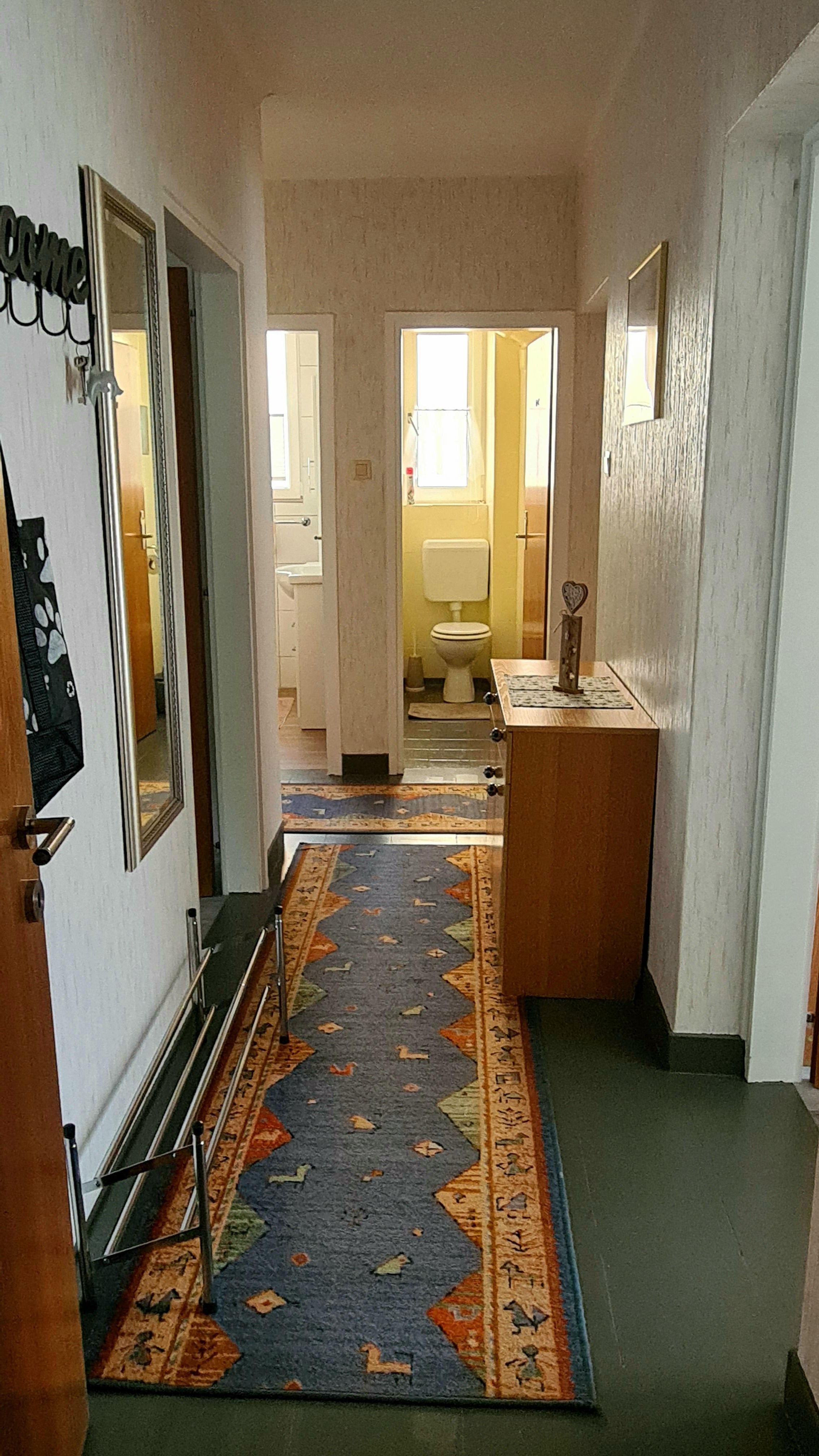 Das Appartement liegt im 2. Stock des Hauses. Es hat 2 Schlafzimmer, 1 Wohnzimmer mit Sat-TV, eine Wohnküche, Bad und WC getrennt und einen Vorraum.