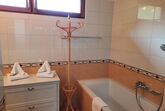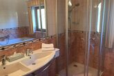 Auf selber Etage befindet sich das Elternschlafzimmer mit Schrank sowie das geräumige Badezimmer mit Doppelwaschbecken und Dusche, Badewanne. Die Toilette mit Bidet und Waschbecken befindet sich gleich im Anschluss.