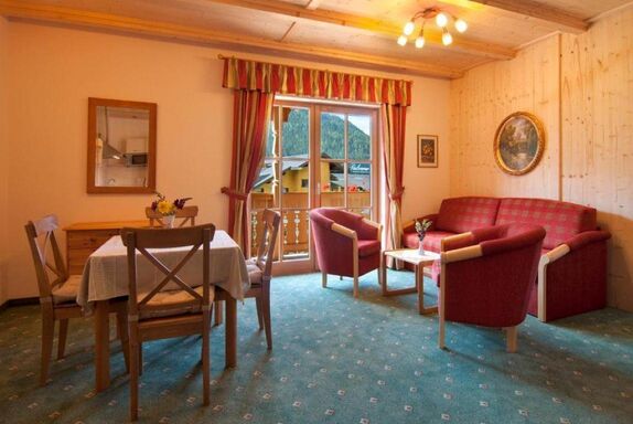 Das zweistöckige Appartement Top 4 verfügt über einen geräumigen Wohnbereich mit Südbalkon. Des weiteren befindet sich gleich anschließend die Küche mit Kühlschrank, Mikrowelle, Backofen und E-Herd sowie Spüle und Geschirrspüler und gemütlicher Sitzecke für bis zu 6 Personen.
