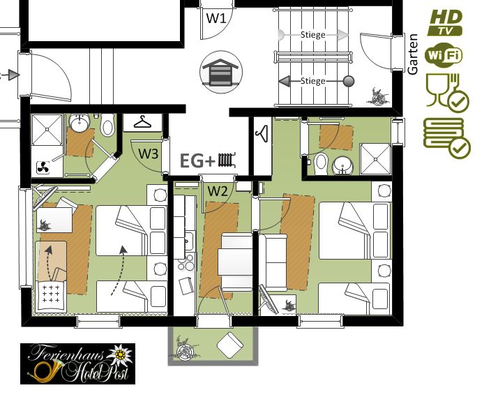 Das Ferienhaus Hotel Post ist zentral, nur wenige Gehminuten vom Dorfplatz im traditionsreichen Ferienort Döllach, Großkirchheim gelegen. Ein großzügiger Garten umgibt unser Ferienhaus und man kann leise das Tosen des Zirknitz Baches hören, welcher direkt am Haus vorbeifließt. In ruhiger Lage, am Ende einer kleinen Sackgasse findet man Zeit und Raum zum Entspannen und Genießen.