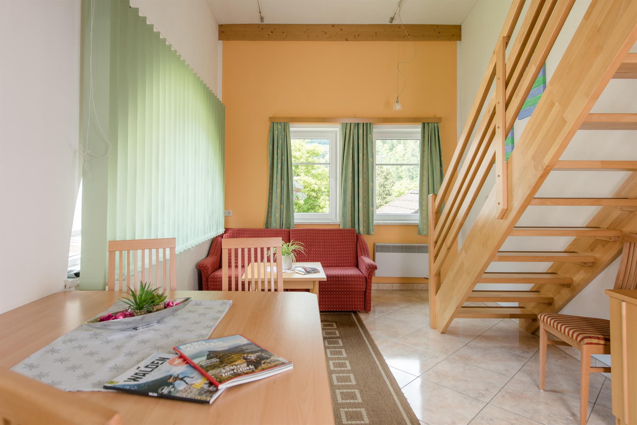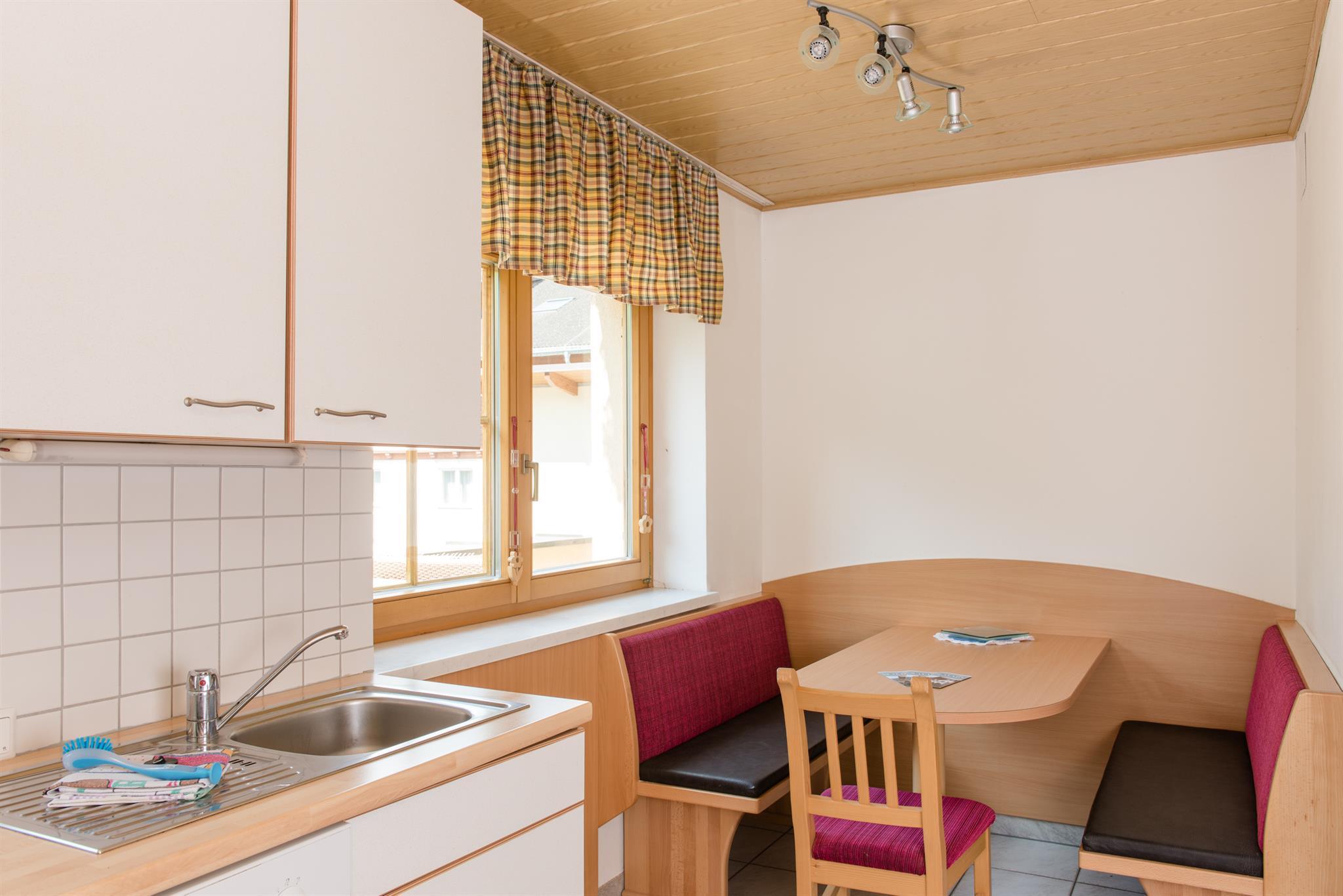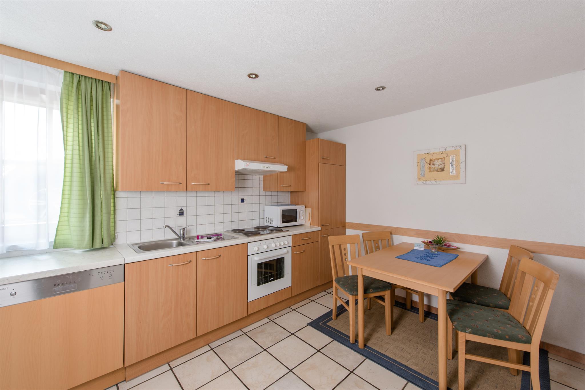 Schönes, großes Appartement für bis zu 6 Personen. Ein Doppelzimmer, Galerie mit 2 Einzelbetten, komb. Wohn- und Schlafraum mit 2 Schlafmöglichkeiten, Küchenblock mit Geschirrspüler, Mikrowelle, Wasserkocher, Elektroherd und Backrohr. Badezimmer mit Dusche/WC, Skiraum mit Schuhtrockner.