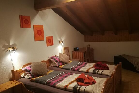 Die 3 Zimmerwohnung im Dachgeschoss mit Südbalkon verfügt über 1 moderne, komfortable Wohnküche, 1 grosszügige Sitzecke, 2 Schlafzimmer,SAT-TV, DVD-Anlage mit Filmauswahl, Radio/CD-Player, VSH, Haarföhn, Dusche/WC sowie alle Fenster können mit Rolladen zugemacht werden.