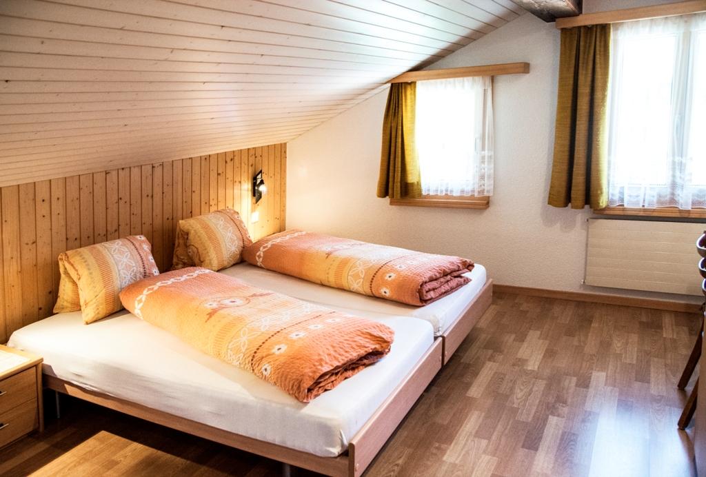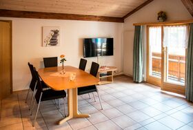 Die 5-Zimmerwohnung befindet sich im dritten Stock. Es gibt zwei Doppelzimmer und zwei Einzelzimmer. Die Wohnküche ist gut ausgestattet mit Geschirrspüler, Backofen, Mikrowelle, Kaffeemaschine (Kapseln), Filterkaffeemaschine, Raclette, Fondue und Toaster. Im Wohnbereich gibt es einen Fernseher, ein Radio und WLAN. Das Badezimmer besteht aus einer Dusche und einem WC, zusätzlich gibt es ein separates WC. Der Balkon ist nach Süden ausgerichtet.