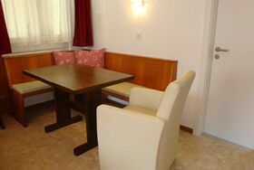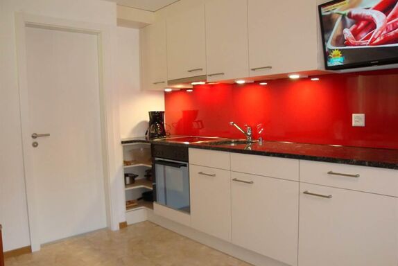 1-Zimmer-Wohnung, 25 m2 im Erdgeschoss mit Sitzplatz auf der Südseite und Westseite, Wohn-/Schlafzimmer mit 2 Betten, Digital TV und Radio, W-LAN kostenlos. Esstisch mit Eckbank. Offene Küche mit Backofen, Glaskeramikkochfeld 4 Kochzonen, Kühlschrank, Kaffeemaschine und Wasserkocher. Dusche/WC. W-LAN kostenlos.