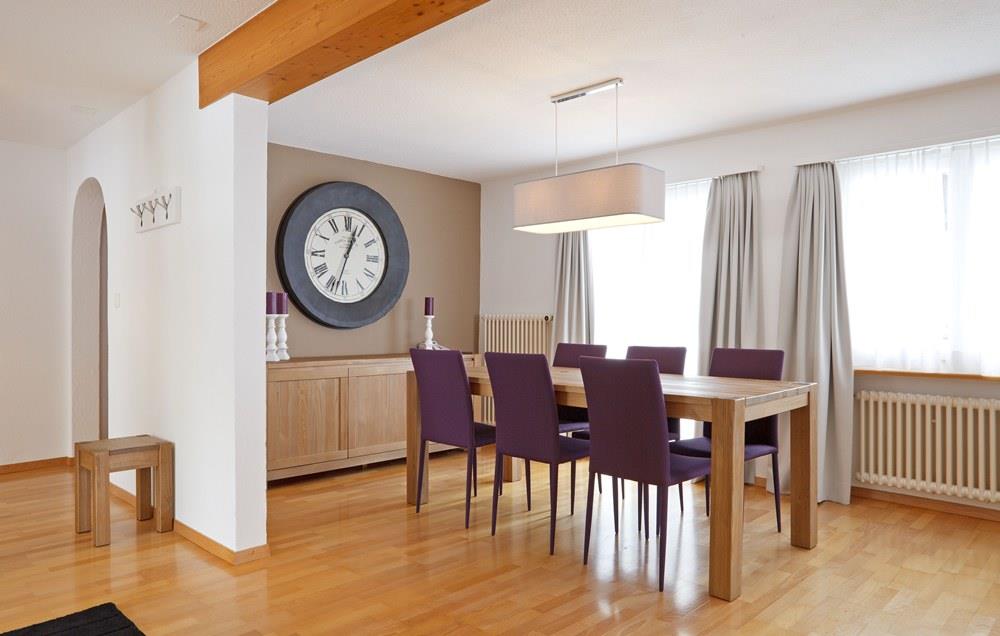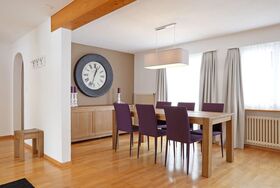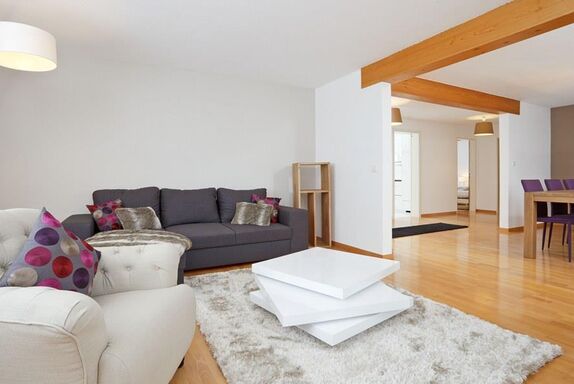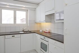 Sehr schöne, helle, moderne und renovierte 3 Zimmerwohnung (ca. 80m2) im 1. Stock mit Lift; Parkplatz; zur Mitbenützung Velo/Skiraum; Küche ausgestattet mit Mikrowelle, Cerankochfeld, Backofen, Kühlschrank mit Gefrierfach, Geschirrspülmaschine und Kaffeemaschine; Schlafzimmer mit 2 Betten (90x200), Kleiderschrank, angrenzendes Badezimmer mit Bad/Dusche/WC, 2 Lavabos; kleines Schlafzimmer mit 2 Betten (90x200) und Kleiderschrank; separater Dusche/WC; Grosses Wohn-/Essbereich mit Schlafcouch, TV, Radio, CD-DVD Player, Kamin, Esstisch mit 6 Stühlen, Telefon, Balkon; alle Zimmer mit Laminat oder Fliesen; Kinderbett auf Anfrage; Nichtraucher Wohnung; Haustiere nicht erlaubt!