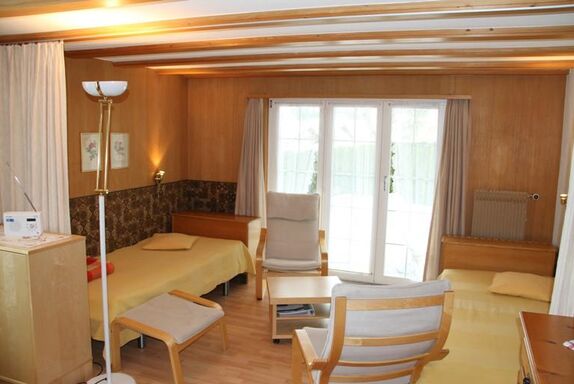 2.5-Zimmerwohnung im Parterre mit Garten/Sitzplatz. An zentraler, ruhiger Lage. 3 Gehminuten von den Bergbahnen entfernt. 2 Schlafzimmer. Moderne, sehr gut ausgestattete Küche. Modernes Badezimmer, Dusche/WC. Telefon, TV/Radio. Skiraum und Parkplatz. Nichtraucherwohnung. Haustiere nur auf Anfrage.
