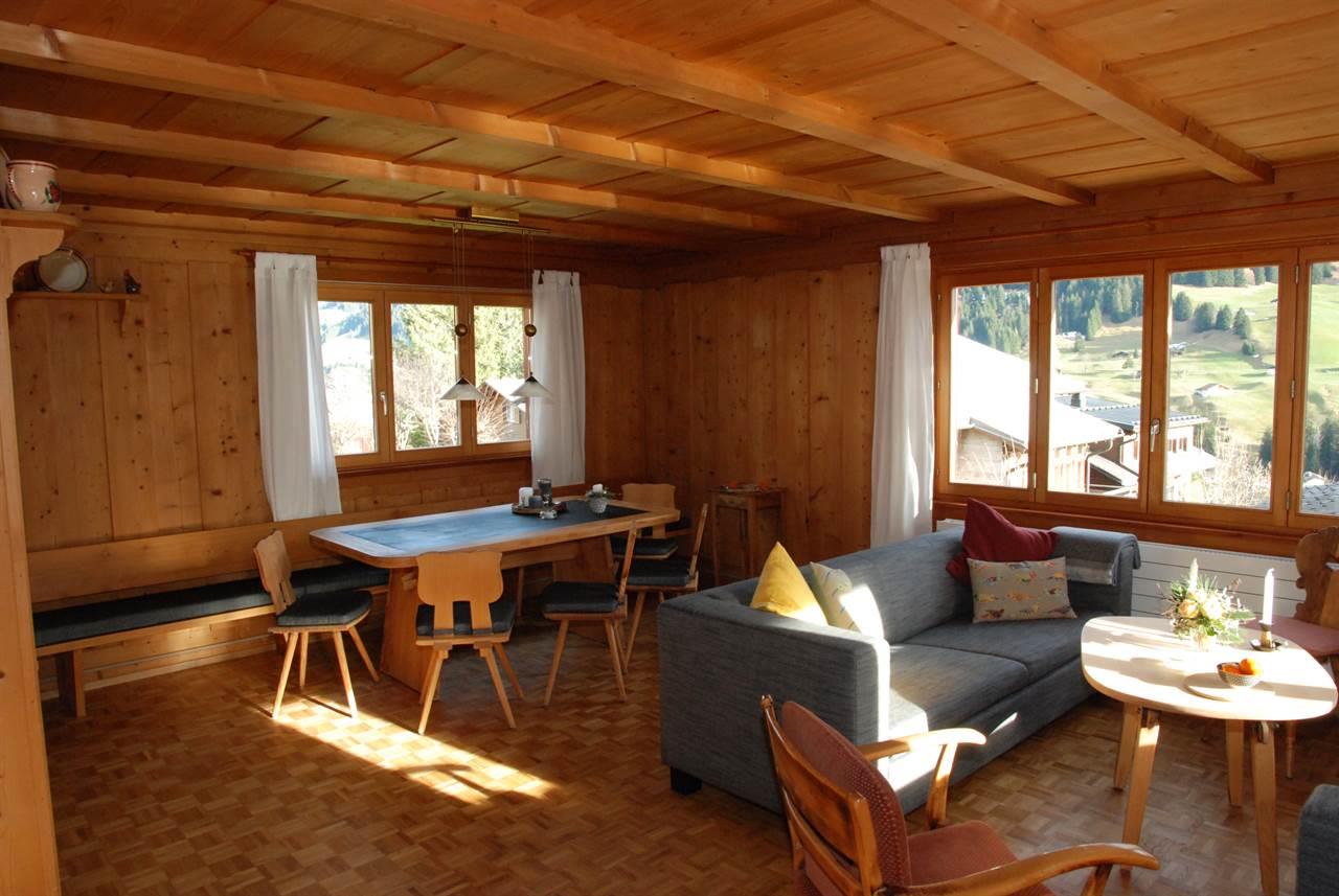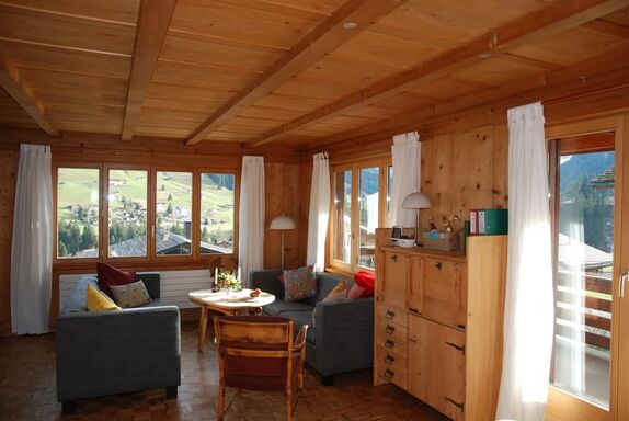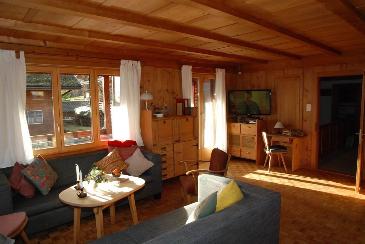 Einzelchalet an zentraler Lage (Vollrenovation 2016), 150m2 Wohnfläche. Grosses, helles Wohn-Esszimmer. Internet-TV, Radio und WiFi. 2 geräumige Doppelschlafzimmer mit Einzelmatratzen, 1 heimeliges Einzelzimmer, Duvets nordisch (3x Daunen und 2x Bambus-Naturfaser bestens geeignet für Allergiker). Topmoderne Küche mit grossem Induktionskochfeld, Backofen, Dampfgarer, Wärmeschublade, Kühlschrank mit Gefrierfach, Geschirrspüler, Nespresso-Kaffeemaschine, Fondue- und Raclette-Set, Küchentücher. 1 Badzimmer mit schwellenloser Dusche/WC. Separates WC. Waschmaschine/Tumbler. Grosser Ski/Veloraum. Balkon mit Gartenmöblierung. Parkplatz für bis zu 5 PW's. Haustiere nicht erlaubt.