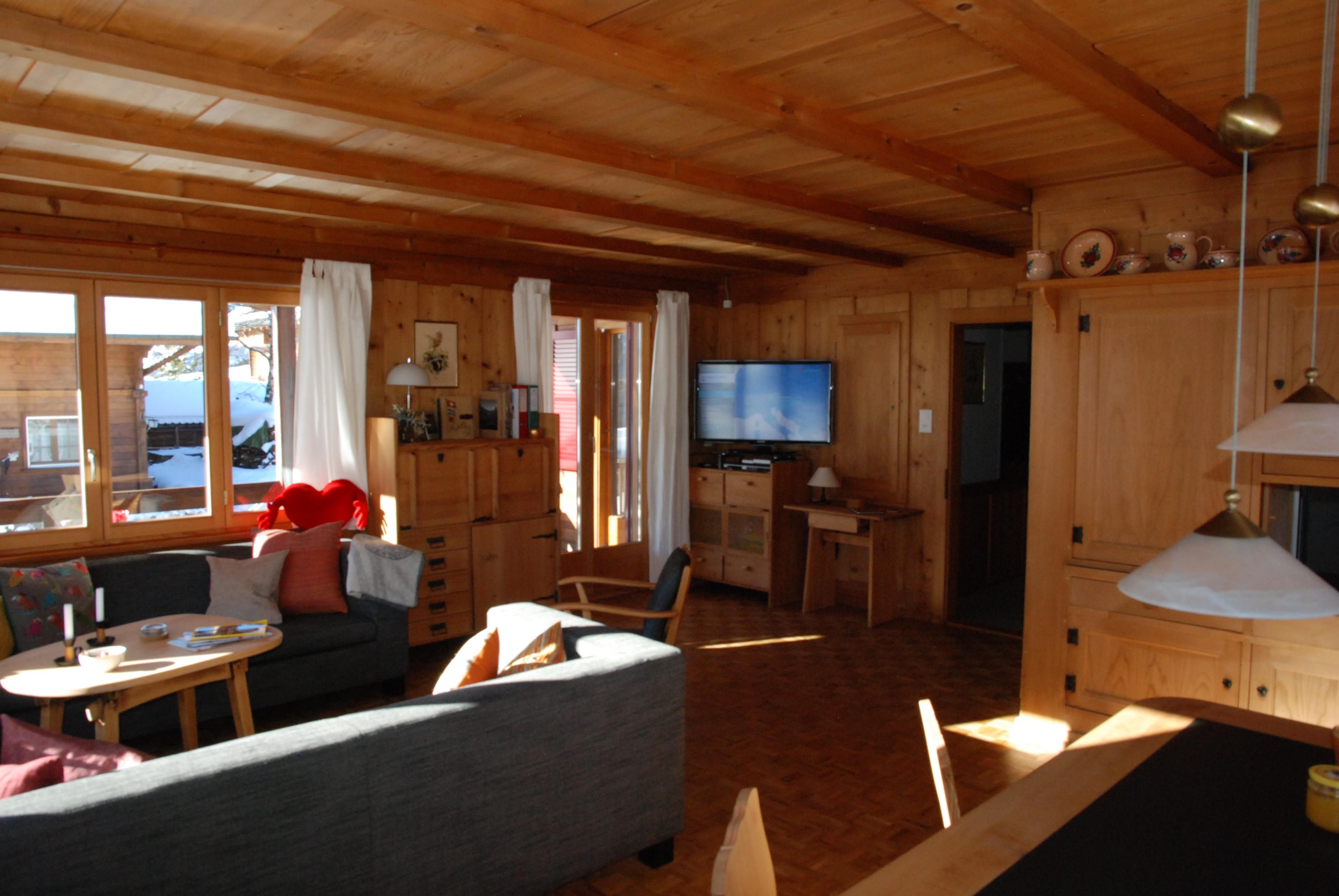 Einzelchalet an zentraler Lage (Vollrenovation 2016), 150m2 Wohnfläche. Grosses, helles Wohn-Esszimmer. Internet-TV, Radio und WiFi. 2 geräumige Doppelschlafzimmer mit Einzelmatratzen, 1 heimeliges Einzelzimmer, Duvets nordisch (2x Daunen und 3x Bambus-Naturfaser bestens geeignet für Allergiker). Topmoderne Küche mit grossem Induktionskochfeld, Backofen, Dampfgarer, Wärmeschublade, Kühlschrank mit Gefrierfach, Geschirrspüler, Nespresso-Kaffeemaschine, Fondue- und Raclette-Set, Küchentücher. 1 Badzimmer mit schwellenloser Dusche/WC. Separates WC. Waschmaschine/Tumbler. Grosser Ski/Veloraum. Balkon mit Gartenmöblierung. Parkplatz für bis zu 5 PW's. Haustiere nicht erlaubt.