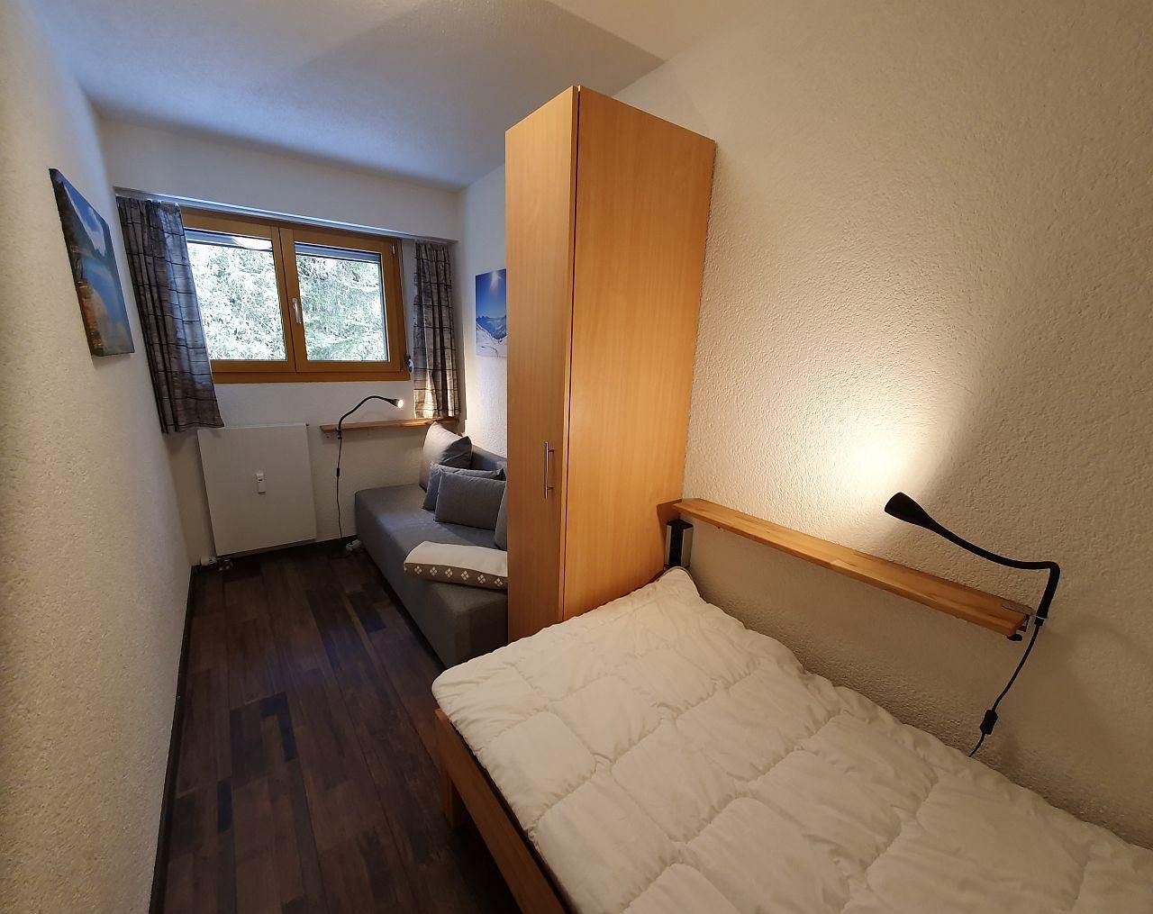 Renovierte 3- Zimmer-Wohnung (ca. 62 m²) im Haus Curtschin. Die Wohnung verfügt über ein grosses Wohnzimmer mit integrierter Einbauküche (Geschirrspüler, Backofen, Kühlschrank). Offener Kamin, Balkon, TV und W-Lan. Ein Schlafzimmer mit Doppelbett und ein Schlafzimmer mit einem einzelnen Bett und einem Schlafsofa. Die Wohnung ist jedoch nur für max. 4 Personen zugelassen. Dusche, separates WC.