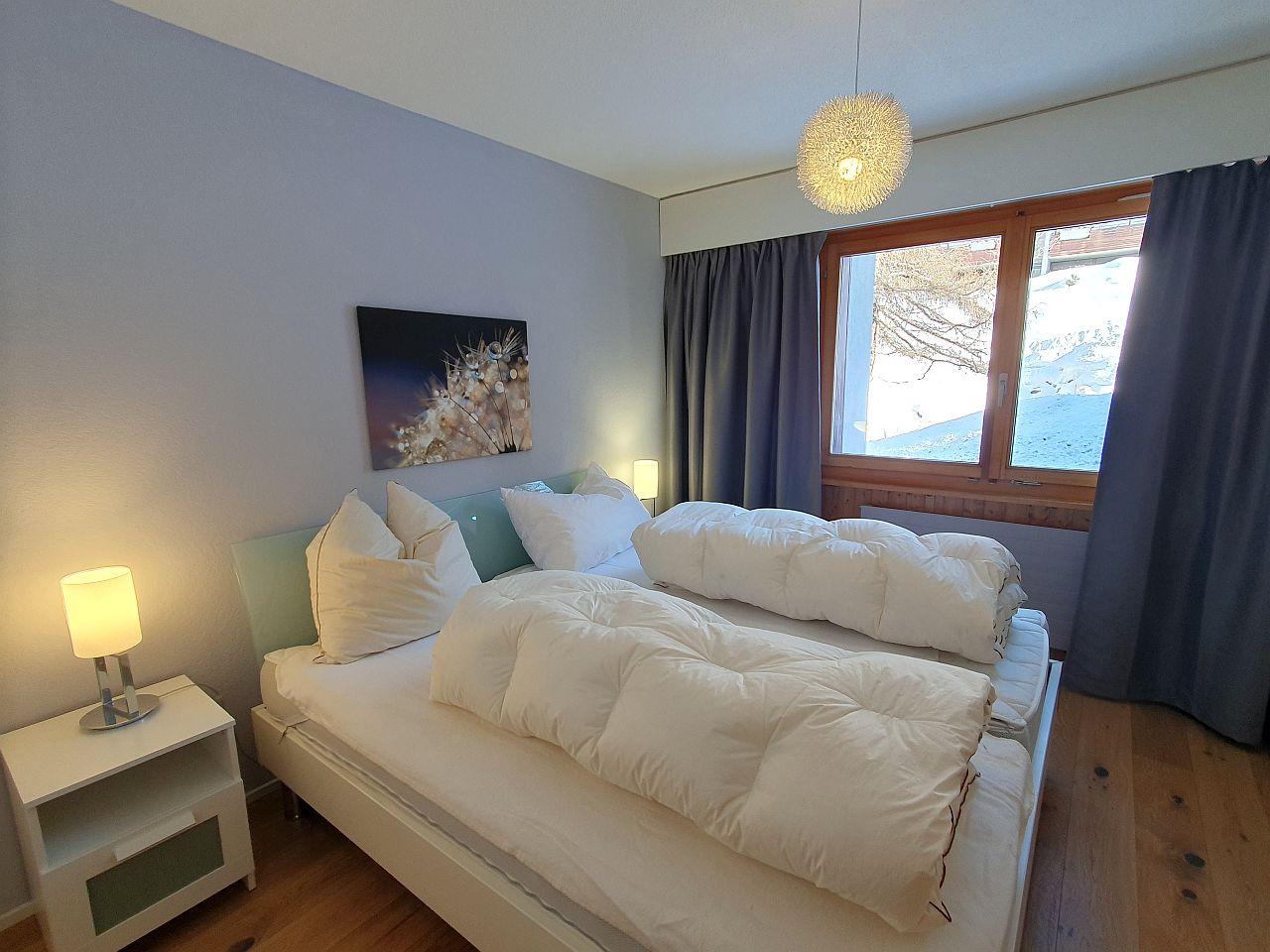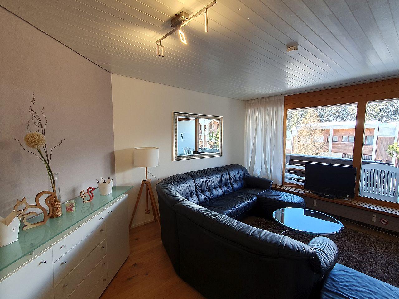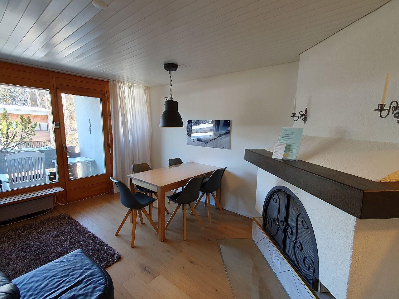 3-Zi/Wohnung (ca. 67 m²) im Haus Valatscha. grosses Wohnzimmer mit integrierter Einbauküche / offener Kamin, Balkon / TV / W-Lan. Ein Schlafzimmer mit 1 Stockbett und 1 Hochbett. Ein Schlafzimmer mit Doppelbett. Bad / separates WC