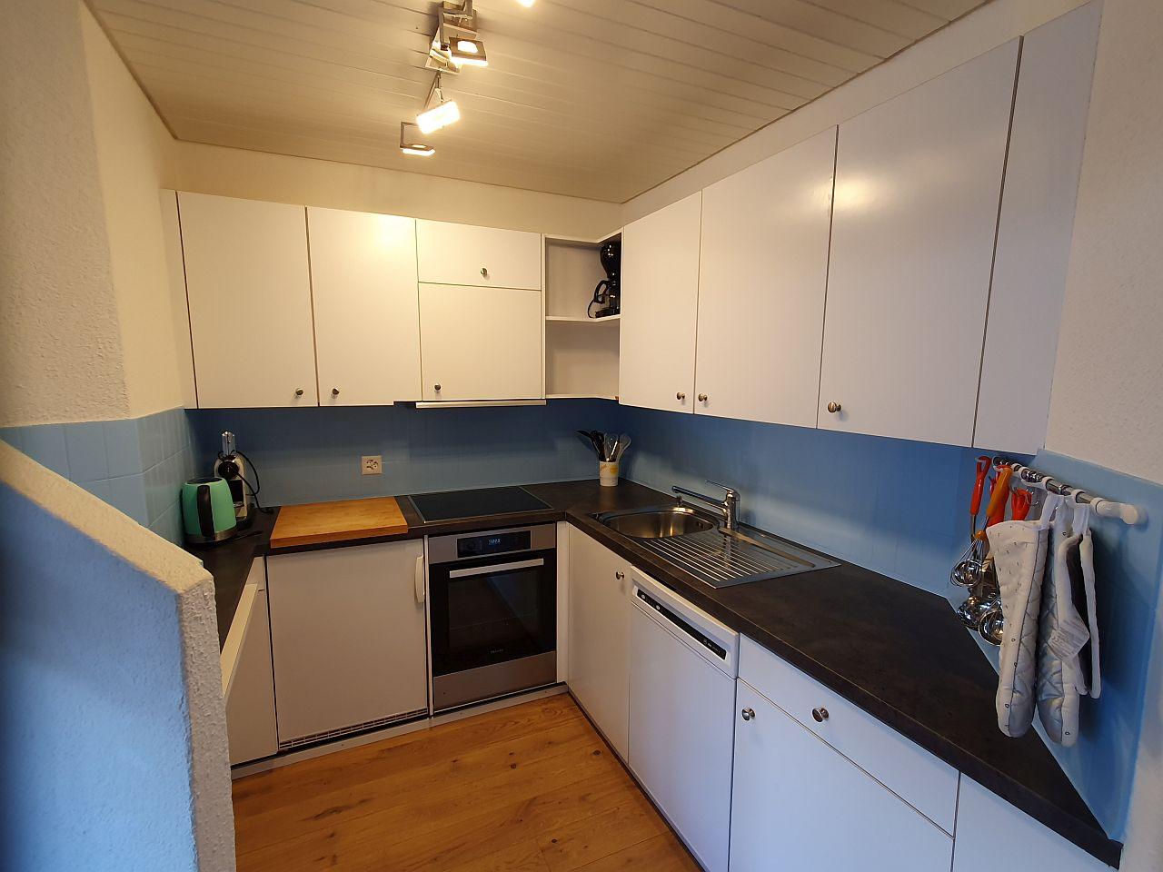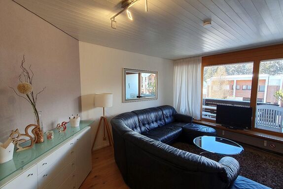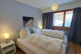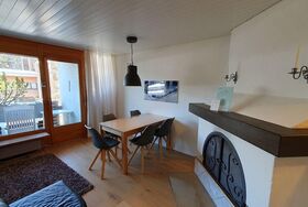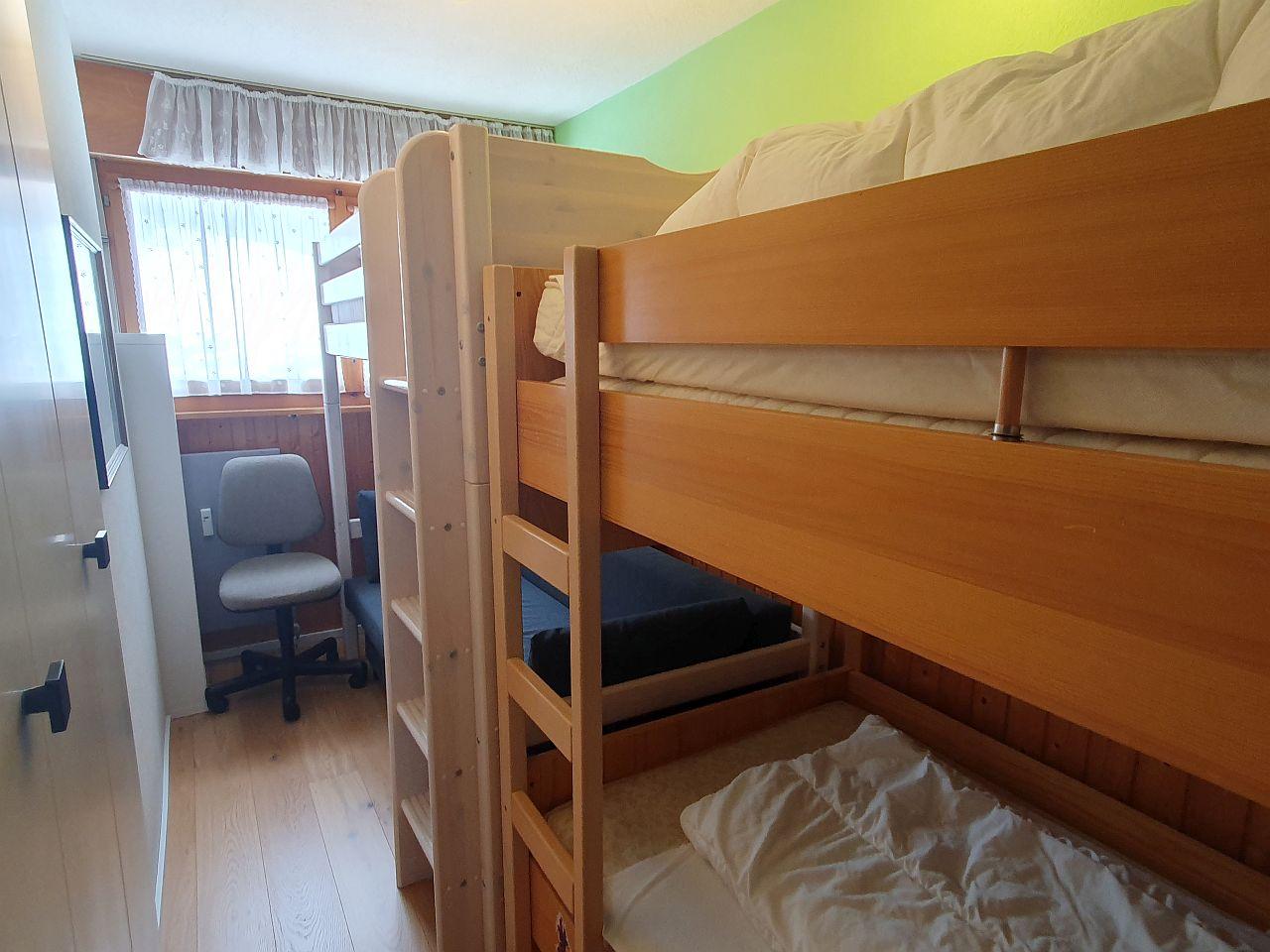 3-Zi/Wohnung (ca. 67 m²) im Haus Valatscha. grosses Wohnzimmer mit integrierter Einbauküche / offener Kamin, Balkon / TV / W-Lan. Ein Schlafzimmer mit 1 Stockbett und 1 Hochbett. Ein Schlafzimmer mit Doppelbett. Bad / separates WC