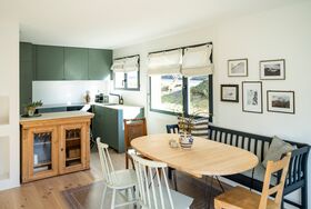 Auf 63 m2 verteilt verfügt die liebevoll und gemütlich eingerichtete Wohnung über ein helles Wohnzimmer mit Sofa, Fensterbank und Esstisch, eine offene Küche mit Kücheninsel, zwei Schlafzimmer, ein Badezimmer sowie einem Sitzplatz mit Nachmittags- und Abendsonne, welcher direkt in eine bespielbare Wiese übergeht.