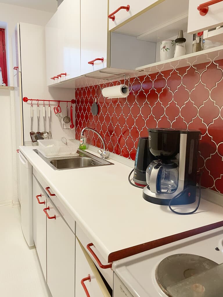 Die Wohnung ist sorgfältig gestaltet und bietet alles, was Sie für einen entspannten Aufenthalt benötigen. Das Badezimmer ist mit einer Dusche, Toilette und flauschigen Handtüchern ausgestattet, um Ihnen höchsten Komfort zu bieten. Die Küche ist vollständig ausgestattet und verfügt über eine Senseo-Kaffeemaschine, einen Herd mit Backofen sowie einen Kühlschrank. Hier können Sie nach Herzenslust kochen und Ihre Mahlzeiten in gemütlicher Atmosphäre genießen.