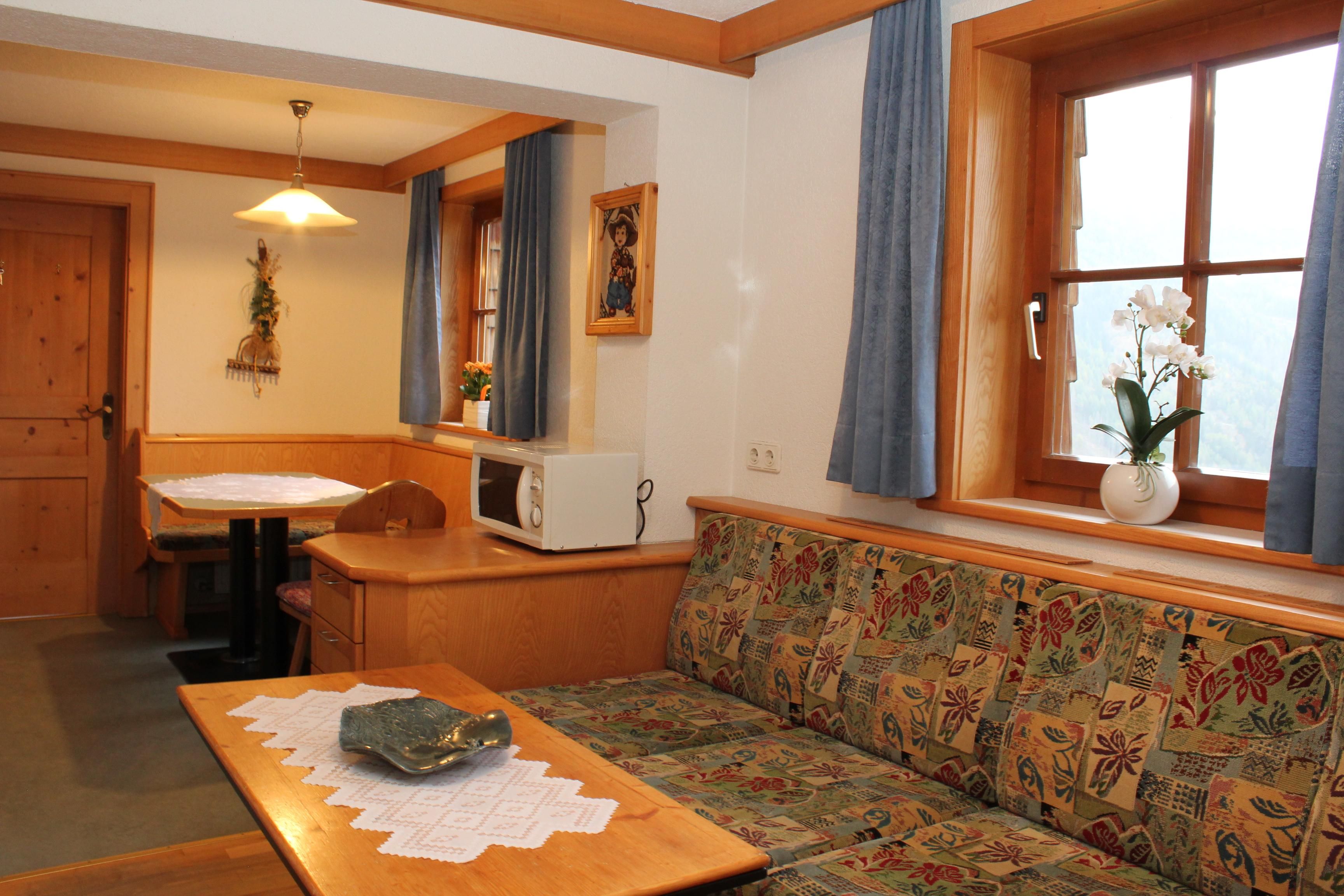 Ferienwohnung mit herrlichem Blick auf Matrei und Umgebung! Gemütliche eingerichtete Ferienwohnung mit großem Balkon, Küche ausgestattet mit kleiner Küchenzeile, Elektoherd, Backofen, Mikrowelle, Wasserkocher..,gemütliche Sitzcouch und Sat/ TV, Wlan Internet, 1 Doppelzimmer und 1 Kinderzimmer und 1 Dusche und WC.