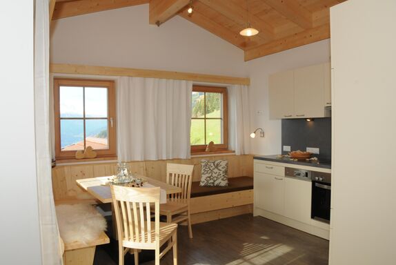 Neubau, Süd-Westlage, topausgestatte Wohnküche, Liegecouch, Balkon, 2 helle Schlafzimmer, Holzboden, Vollholzmöbel, allergikerfreunlich, Fußbodneheizung, Badezimmer mit Dusche, Kosmetikspiegel, Haartrockner, WC extra, separater Eingang, W-LAN, SAT-TV