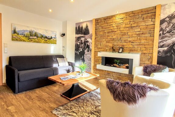 Eine moderne Ferienwohnung mit 2 Zimmern im 1. Obergeschoss mit Bergblick.