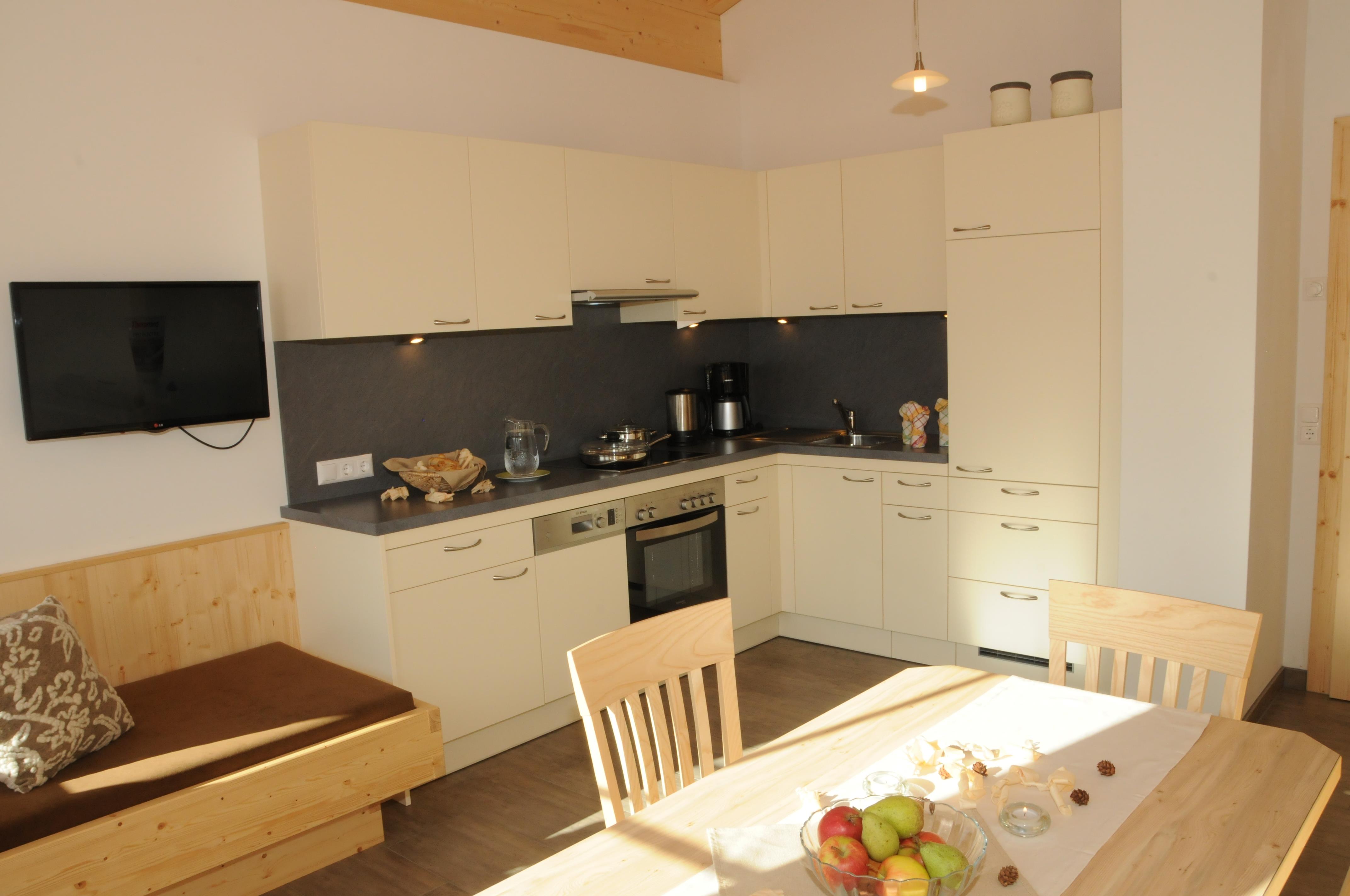 Neubau, Südlage, topausgestatte Wohnküche, Entspannungscouch, Balkon, 2 helle Schlafzimmer -Holzboden, Vollholzmöbel, allergikerfreundlich, Fußbodneheizung, Badezimmer, Dusche, Kosmetikspiegel, Haartrockner, WC extra, separater Eingang, W-LAN, SAT-TV
