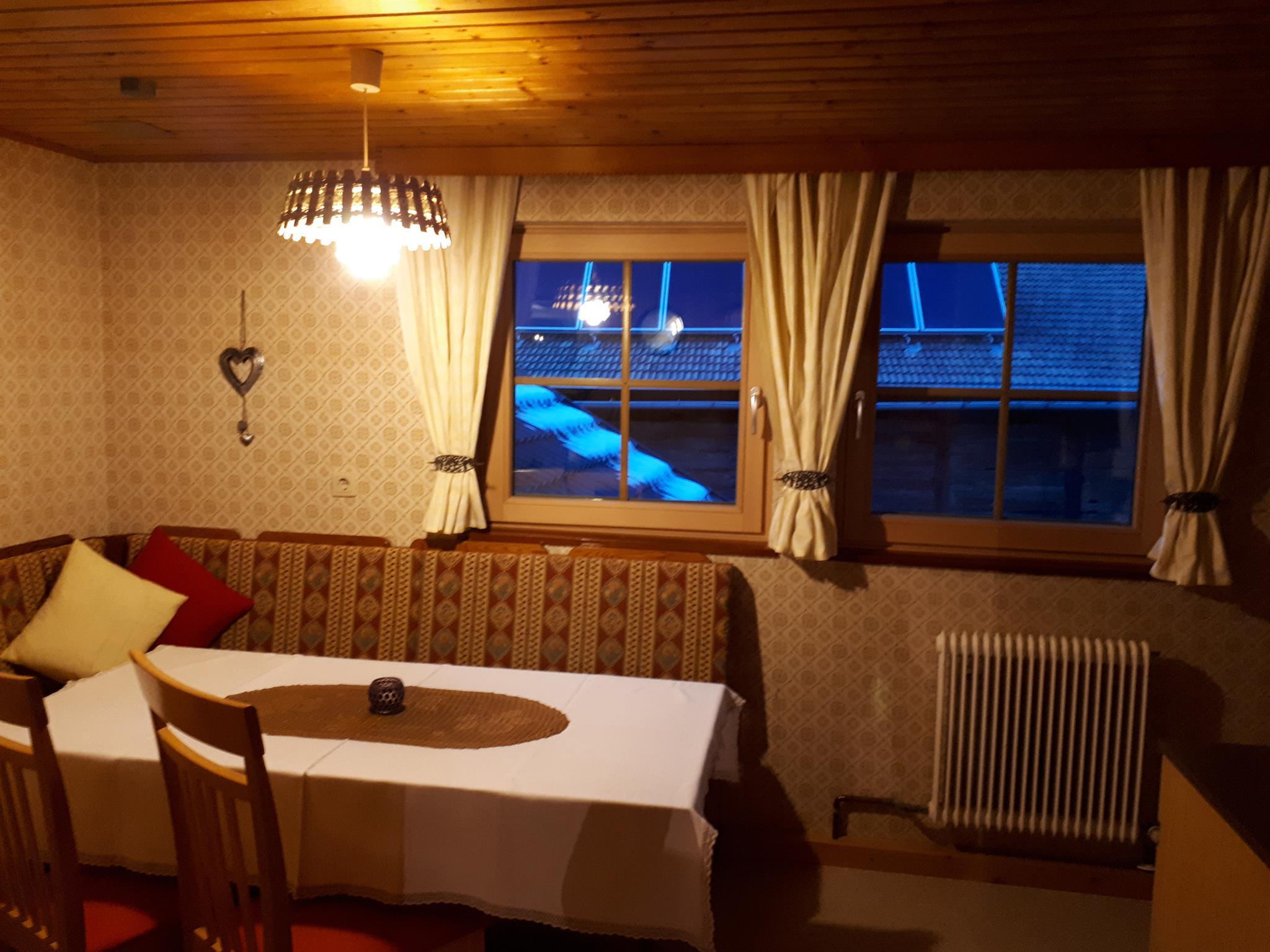Größe 55m² 1 Doppelbettzimmer mit südseitigem Balkon 1 Doppelbettzimmer 1 Einbettzimmer einen großen Vorraum Badezimmer WC extra Wohnküche mit sämtliche Küchenutensilien, Kühlschrank, Kaffeemaschine, Wasserkocher gemütliche Sitzecke mit SA
