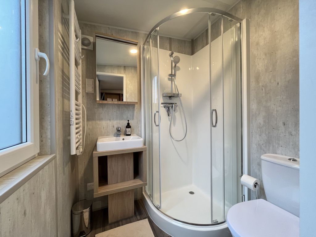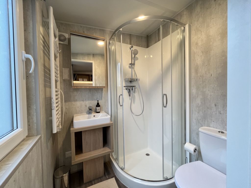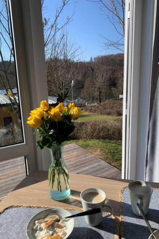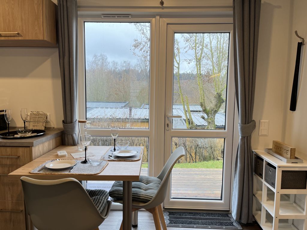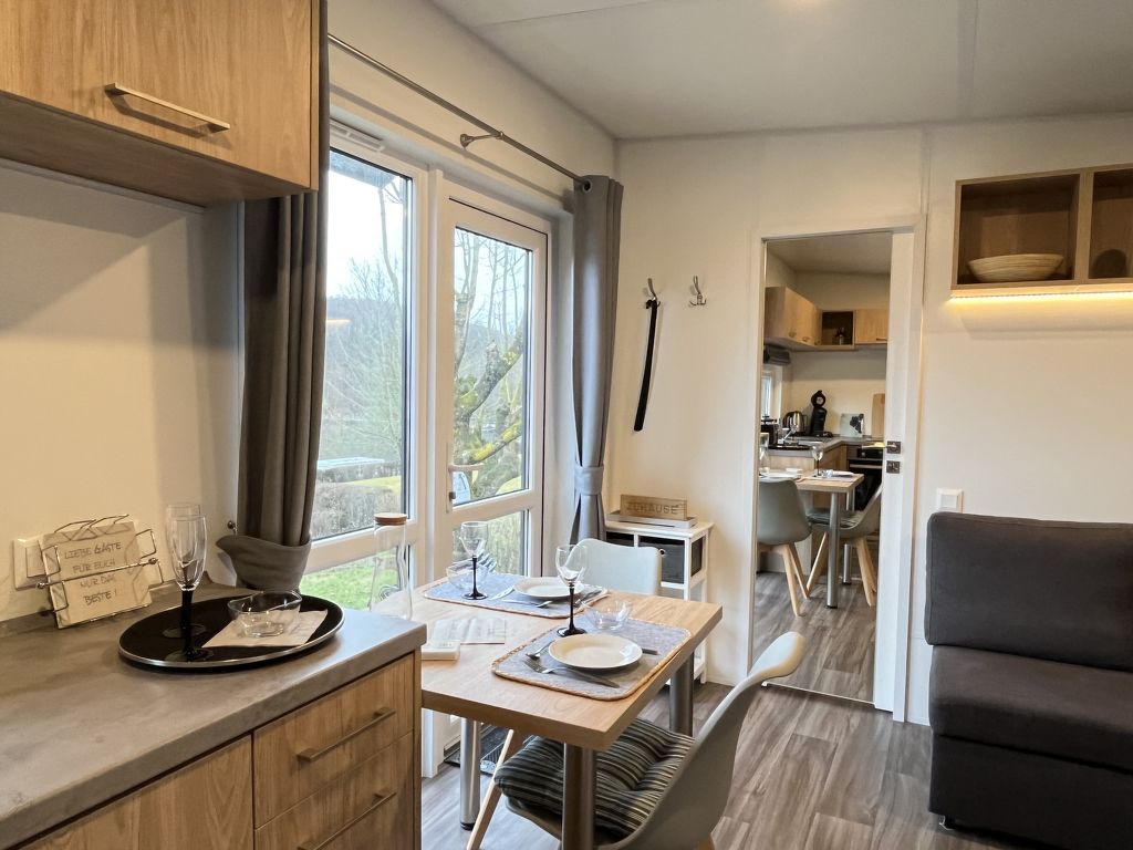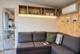 Tiny Haus mit schönem Seeblick, 2-Zimmer-Mobilheim 25 m2. Objekt geeignet für 2 Erwachsene + 1 Kind. Gemütlich eingerichtet: Wohn-/Esszimmer mit 1 Doppeldiwanbett und Sat-TV. Ausgang zur Terrasse. 1 Zimmer mit 1 franz. Bett (140 cm, Länge 200 cm). Offene Küche (Backofen, 2 Induktionskochplatten, Toaster, Wasserkocher, elektrische Kaffeemaschine). Dusche/WC. E-Heizung, Klimaanlage. Terrasse. Terrassenmöbel, Liegestühle (1). Bitte beachten: Nichtraucher-Haus. Erhöhte Lage mit Blick zum See. Balkonkraftwerk. Hinweis: Die WLAN-Verbindung kann je nach Kapazität eingeschränkt sei.