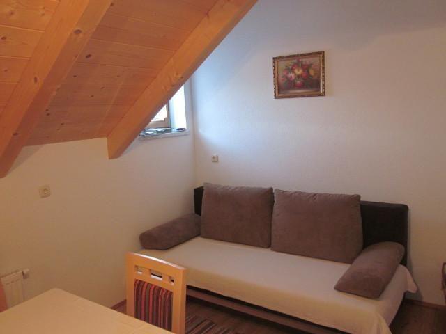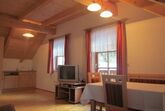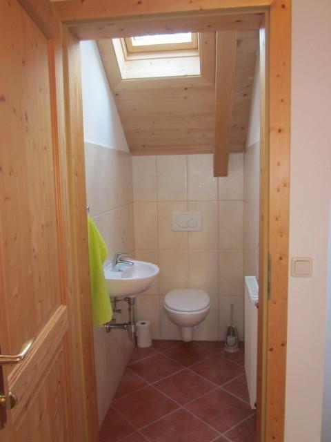 Duschbad, ein seperates WC und einen großen Vorraum mit Gaderrobe. Der geräumige, gemütlich eingerichtete Wohn und Eßbereich wird durch einen großzügigen Balkon aufgewertet, von wo aus man die Vögel im Wald singen hören kann.